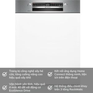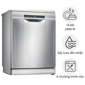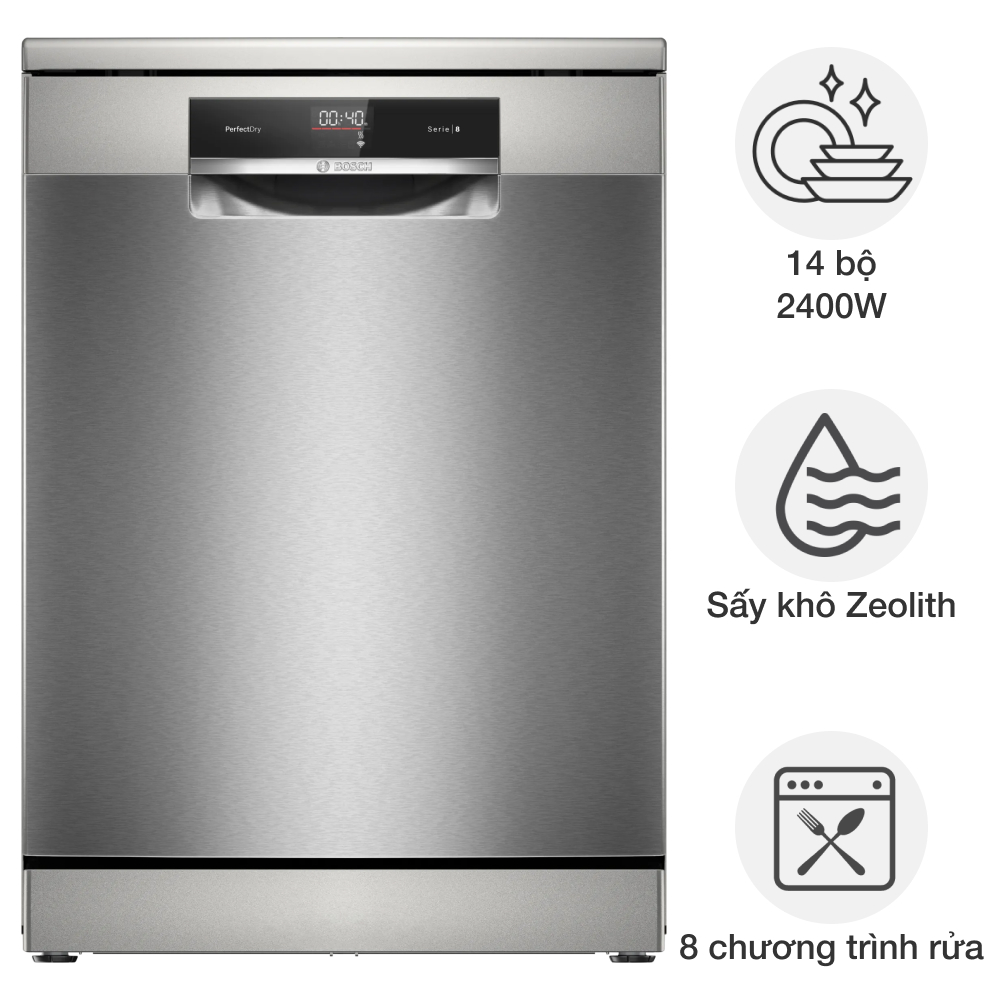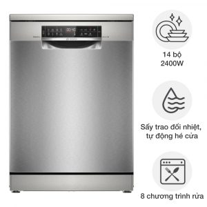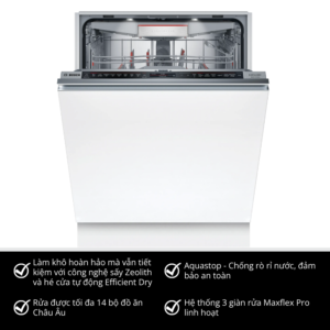 Máy rửa bát Bosch tích hợp nhiều tính năng ưu việt và thông minh. Khả năng làm sạch, diệt khuẩn và sấy khô triệt để giúp chén bát luôn sạch bóng và an toàn vệ sinh. Hoạt động êm ái không gây tiếng ồn khó chịu.