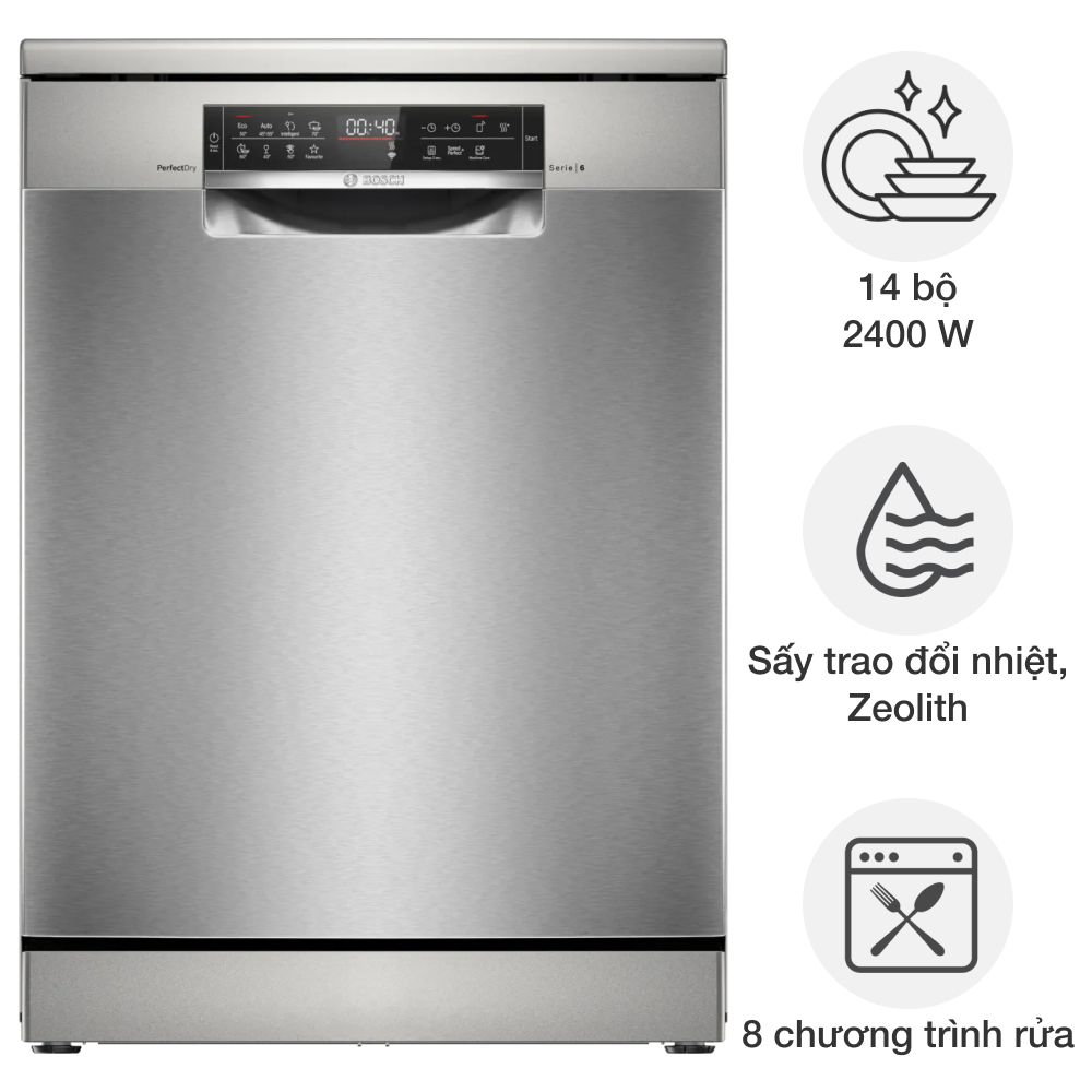 Máy rửa bát Bosch nổi tiếng với chất lượng Đức , độ bền và hiệu quả vượt trội. Sở hữu một chiếc máy rửa bát Bosch mang lại nhiều lợi ích thiết thực như tiết kiệm thời gian , công sức và điện nước cho việc vệ sinh chén bát. Với công nghệ tiên tiến của máy rửa bát Bosch , bạn sẽ có thêm thời gian rảnh rỗi để tận hưởng cuộc sống bên gia đình và làm những điều mình yêu thích.