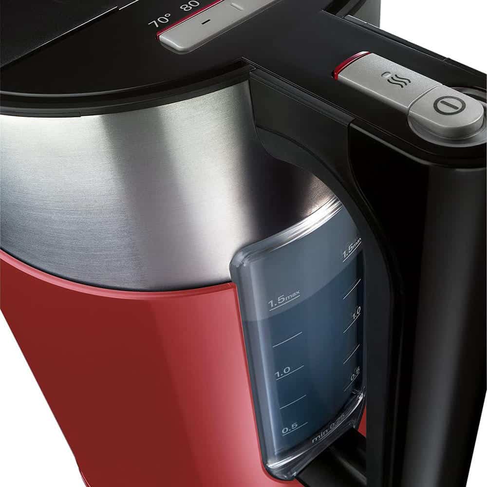 Sản phẩm được thiết kế với tay cầm chắc chắn, khả năng cách nhiệt, chóng nóng hiệu quả tăng tính an toàn cho người sử dụng. Ngoài ra, Ấm Đun Siêu Tốc Siemens TW86104P còn được thiết kế với bộ phận chỉ báo mực nước trong suốt có thể nhìn thấy rõ mực nước lớn bên ngoài thân ấm giúp dễ dàng quan sát.