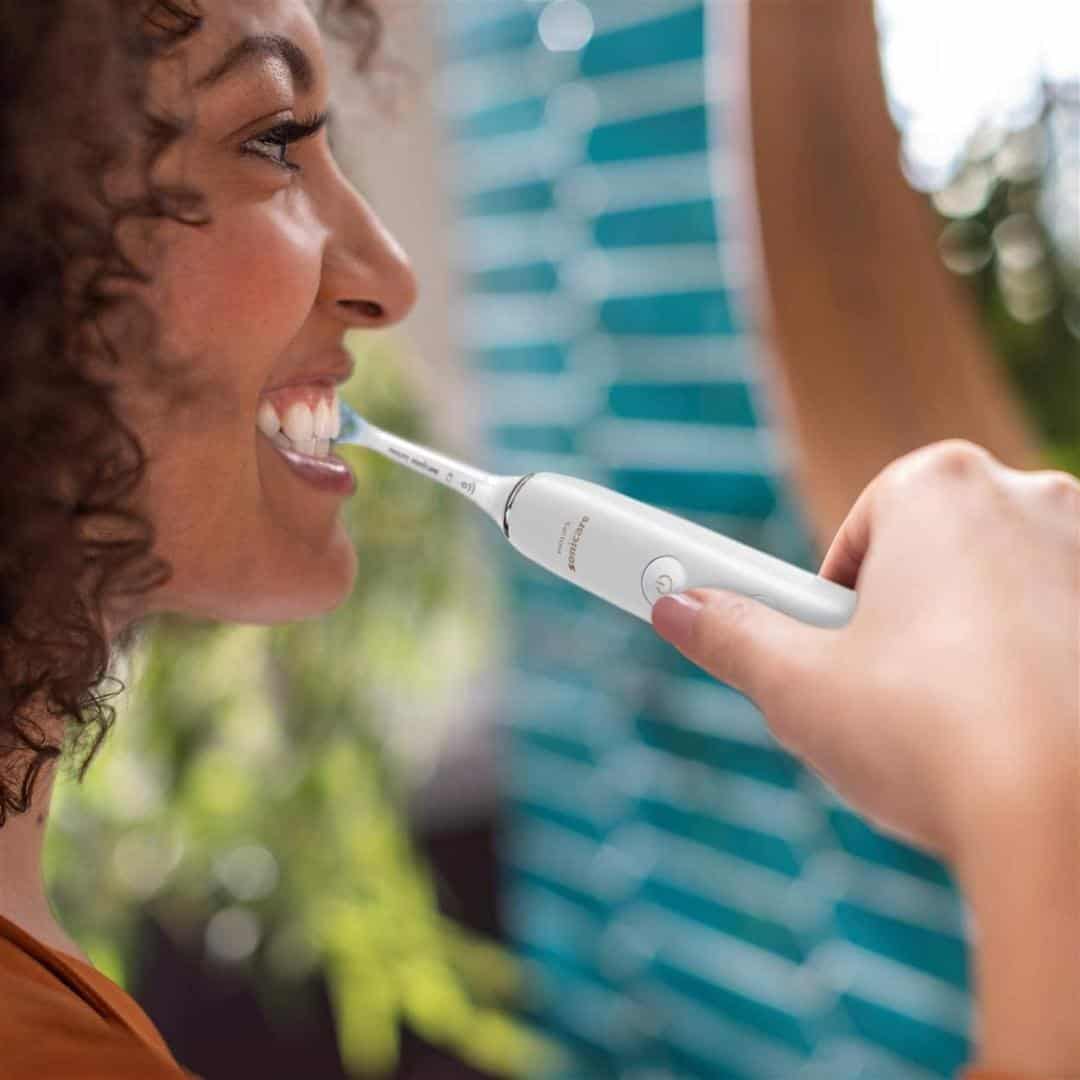 DiamondClean 9000 có các chương trình làm sạch Clean, White +, Gum Health và Deep Clean + để đáp ứng nhu cầu chăm sóc răng miệng của bạn: chương trình “Clean” để làm sạch đặc biệt hàng ngày, chương trình “White +” để loại bỏ sự đổi màu, chương trình “Gum Health” cho một làm sạch nhẹ nhàng dọc theo đường viền nướu và chương trình làm sạch “Deep Clean +” để làm sạch toàn diện thêm sinh lực. Nhờ ba mức cường độ, bạn có thể tìm thấy cài đặt phù hợp nhất cho mình – cường độ cao hơn để làm sạch kỹ càng hơn hoặc cường độ thấp hơn cho răng nhạy cảm.