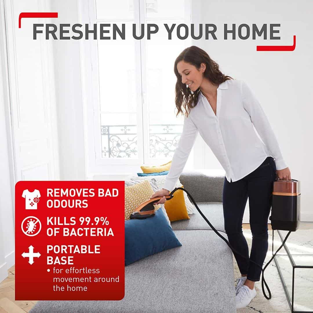 Đối với những người đang tìm kiếm nhiều hơn nữa, bộ phận chính và đầu hơi có thể tách rời khỏi Bảng thông minh để bạn có thể xông hơi và làm vệ sinh xung quanh mà không tốn nhiều công sức. Vải bọc, rèm cửa và khăn trải giường là lý tưởng để xông hơi, vì sức mạnh của hơi nước tiêu diệt đến 99,99% vi khuẩn.