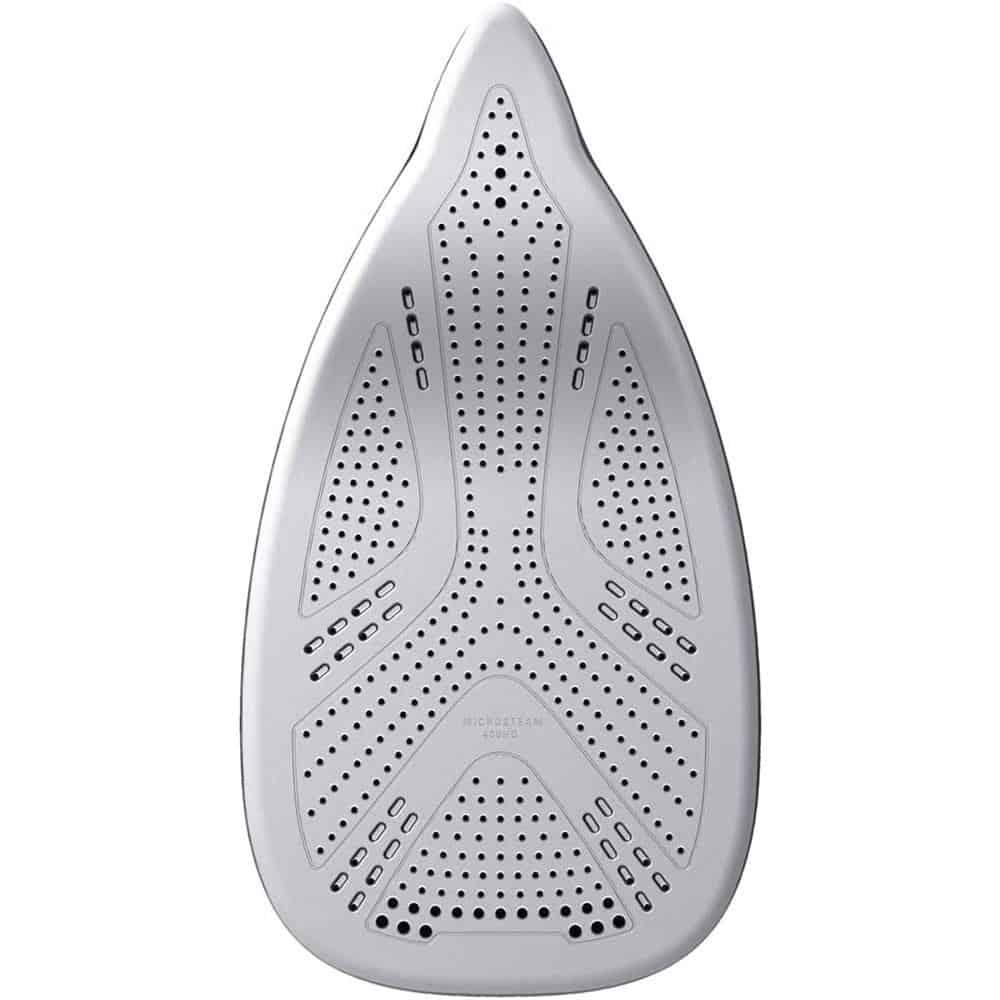 Khác biệt nhất của Rowenta DW5210 so với các mẫu khác trên thị trường dễ nhận biết đó là mặt đế Microsteam 400 HD. Phần mũi bàn là thiết kế thu hẹp hơn nhờ đó có thể len lỏi vào những nơi góc hẹp khó tiếp xúc, các đường nối và phần cổ áo. Các lỗ nhỏ phun hơi nước được bố trí đặc biệt giúp khả năng phân phối hơi nước của chiếc bàn là vượt trội hơn, cho khả năng là ủi dễ dàng và hiệu quả.