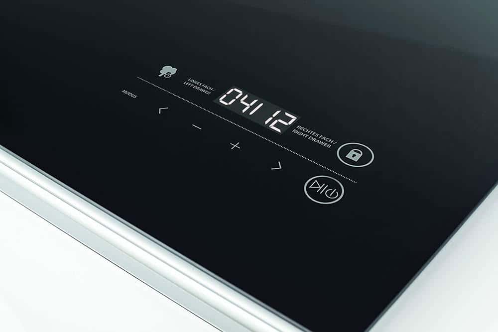 Caso 790 Sound & Cool điều khiển dễ dàng: Màn hình cảm ứng LED trên bề mặt kính cho phép bạn kiểm soát cả nhiệt độ ở các ngăn làm mát bên trái và bên phải cũng như dàn âm thanh một cách trực quan, nhanh chóng và thật dễ dàng.