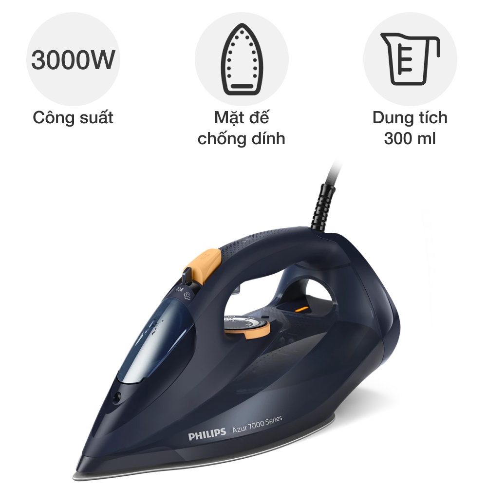 Thông số kỹ thuật và tổng quan sản phẩm Bàn ủi hơi nước Philips DST7060/20 3000 W Azur Steam Iron 7000 Series