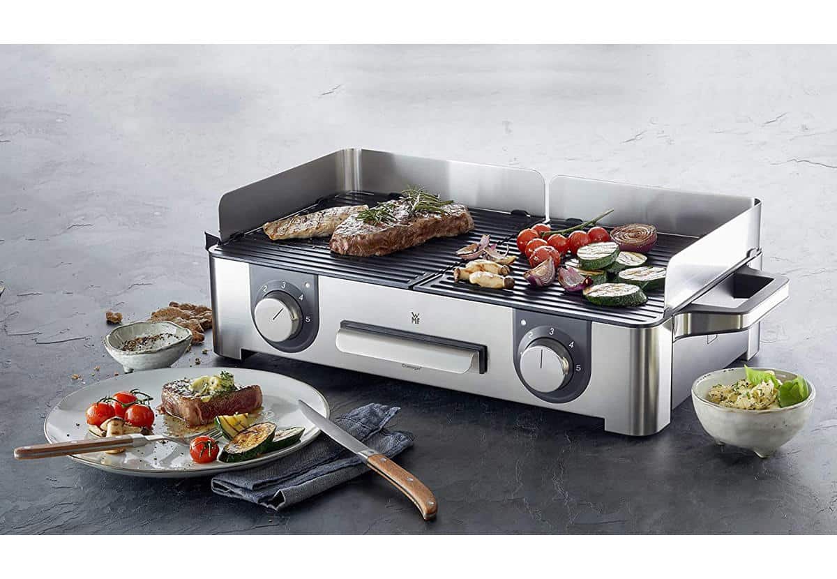 Bếp Nướng BBQ Ngoài Trời WMF Lono Master Grill 2400W với các bề mặt nướng có thể điều chỉnh riêng biệt cho phép nấu đồng thời ở nhiệt độ tối ưu tương ứng hoặc giữ ấm trên một khay hoặc nướng trên khay kia. Đồng thời, vỉ nướng điện cho phép sử dụng ngoài trời với một tấm chắn gió có thể tháo rời ( chiều cao lên đến 6 cm ) đảm bảo cho bạn chế biến ra những món nướng thơm, ngon, nguyên vị ngoài vườn hay trên ban công.