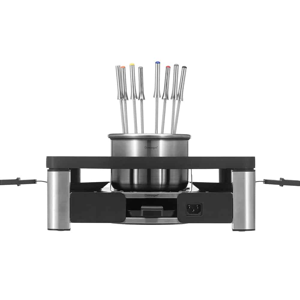 Nồi fondue có thể tích 0,75 lít (đường kính 15 cm, cao 9 cm) hoàn hảo cho dầu, nước dùng thịt hoặc rau cũng như các món lẩu hoặc để đựng khoai tây, nước sốt và các loại tương tự. Giá đỡ nĩa giúp dễ dàng treo và phân loại nĩa xốt bằng thép không gỉ trong quá trình chuẩn bị.