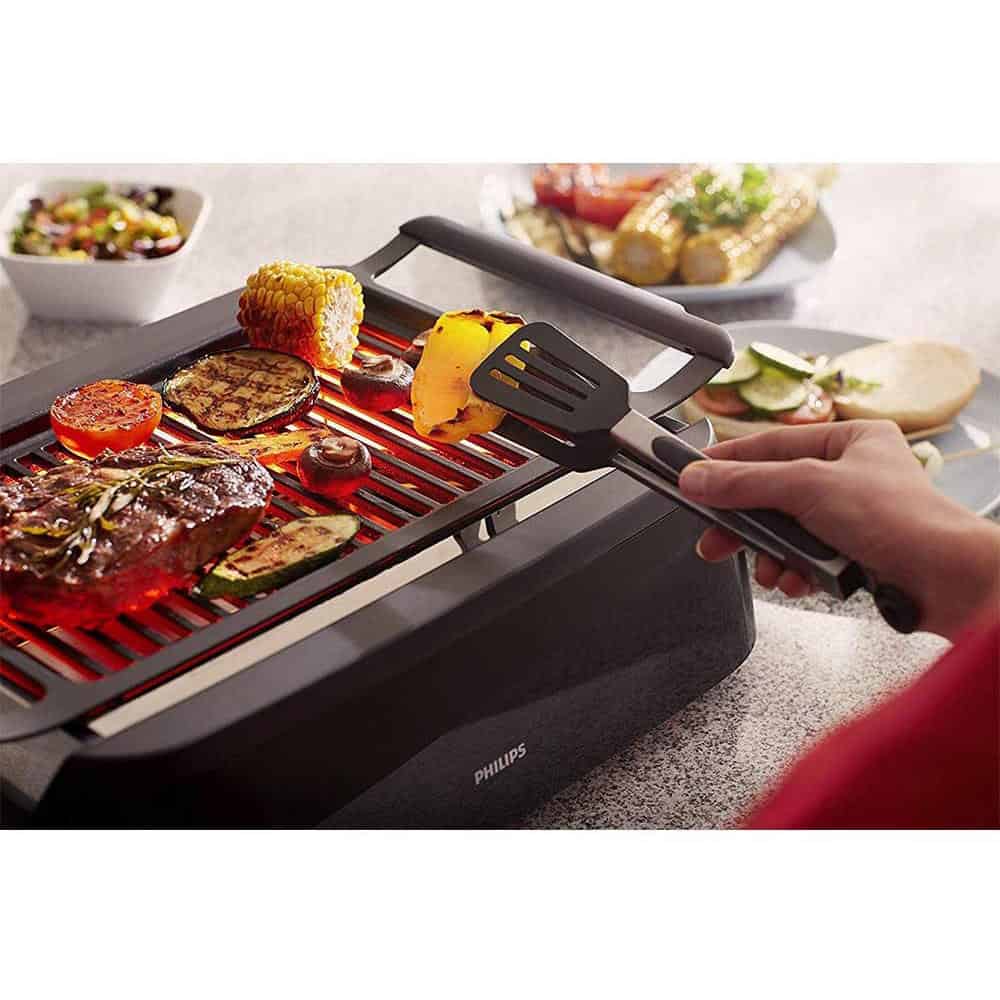 Bếp Nướng Philips HD6371/90 Với công nghệ hồng ngoại tiên tiến dẫn nhiệt cho vỉ nướng, ít khói đảm bảo các món ăn ngon, chín đều. Buồng thu gom chất béo vẫn đủ mát để tránh khói khó chịu và bắn ra từ chất béo bị đốt cháy.