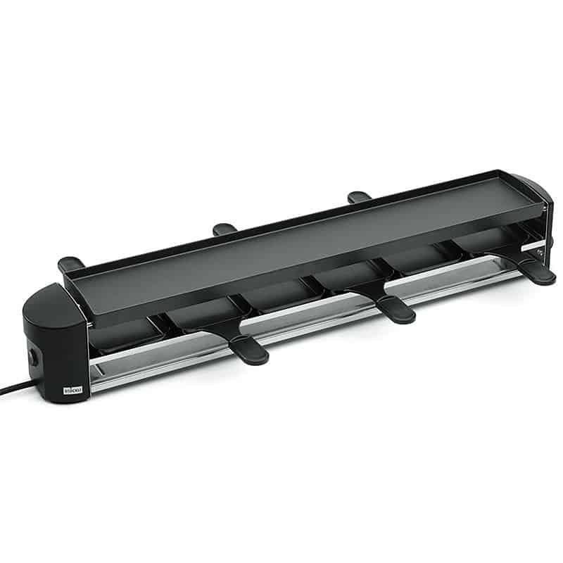 Bếp Nướng Stockli Raclette Grill Cheesmax 4 Anthracite 0009.02 – 6 Người Ăn nướng siêu ngon, mặt bếp chống dính, nướng không bị bắn mỡ và không bị khói. Cả tấm nướng, sáu khay nướng cộng với thìa đều có lớp chống dính.