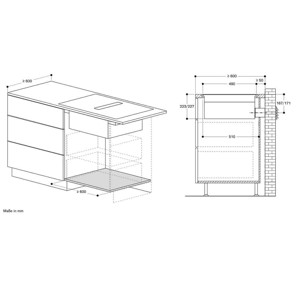 Hệ thống hút mùi với 3 mức công suất điều khiển điện tử và 1 chế độ chuyên sâu. Hệ thống được trang bị động cơ không chổi than hiệu suất cao với công suất lên đến 200W tạo ra một lưu lượng không khí có thể đạt đến 627 m³/h. Hệ thống hút mùi được trang bị bộ lọc mỡ có thể tháo rời, dễ dàng vệ sinh trong máy rửa chén.