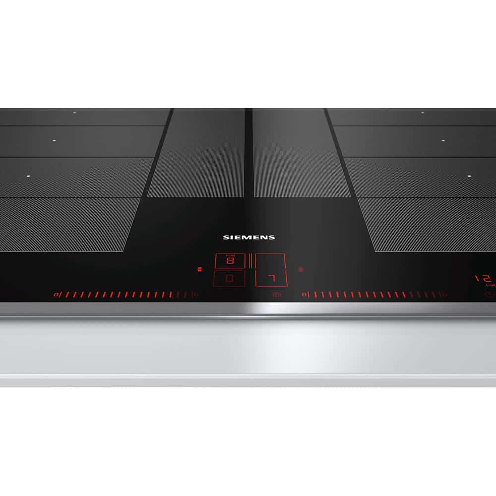 Bảng điều khiển trên Bếp Từ Đa Điểm Siemens EX845LYC1E IQ700 được thiết kế cực kỳ tinh tế, hiện đai theo xu hướng hiện nay. Bảng điều khiển dạng cảm ứng âm dưới mặt bếp, khi không hoạt động thì hoàn toàn không nhìn thấy như nhũng loại bếp thiết kế nổi thông thường. Điều phối tất cả các vùng nấu với một bảng điều khiển tiên tiến duy nhất. Dual lightSlider là viết tắt của công nghệ hiện đại, khả năng sử dụng trực quan và thiết kế hấp dẫn với đặc điểm nổi bật: khi được kích hoạt, bảng điều khiển là điểm nhấn trực quan – khi tắt, bảng điều khiển hoàn toàn vô hình.
