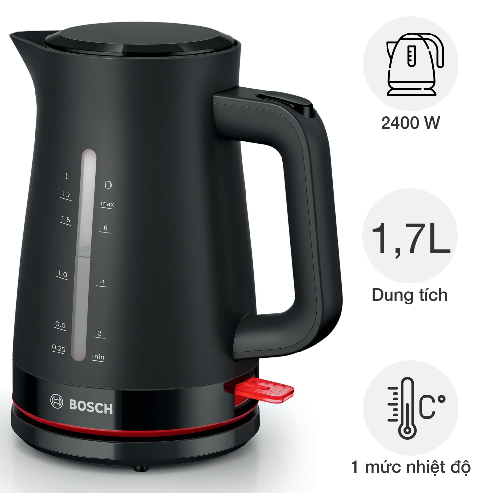 Bình đun siêu tốc Bosch TWK3M MyMoment là người bạn đồng hành hoàn hảo cho những buổi sáng bận rộn. Với công suất mạnh mẽ, thiết bị giúp bạn đun nước nhanh chóng, tiết kiệm thời gian tối đa. Bên cạnh đó là thiết kế hiện đại, dễ sử dụng và vệ sinh, cùng dung tích lớn đáp ứng nhu cầu của cả gia đình.