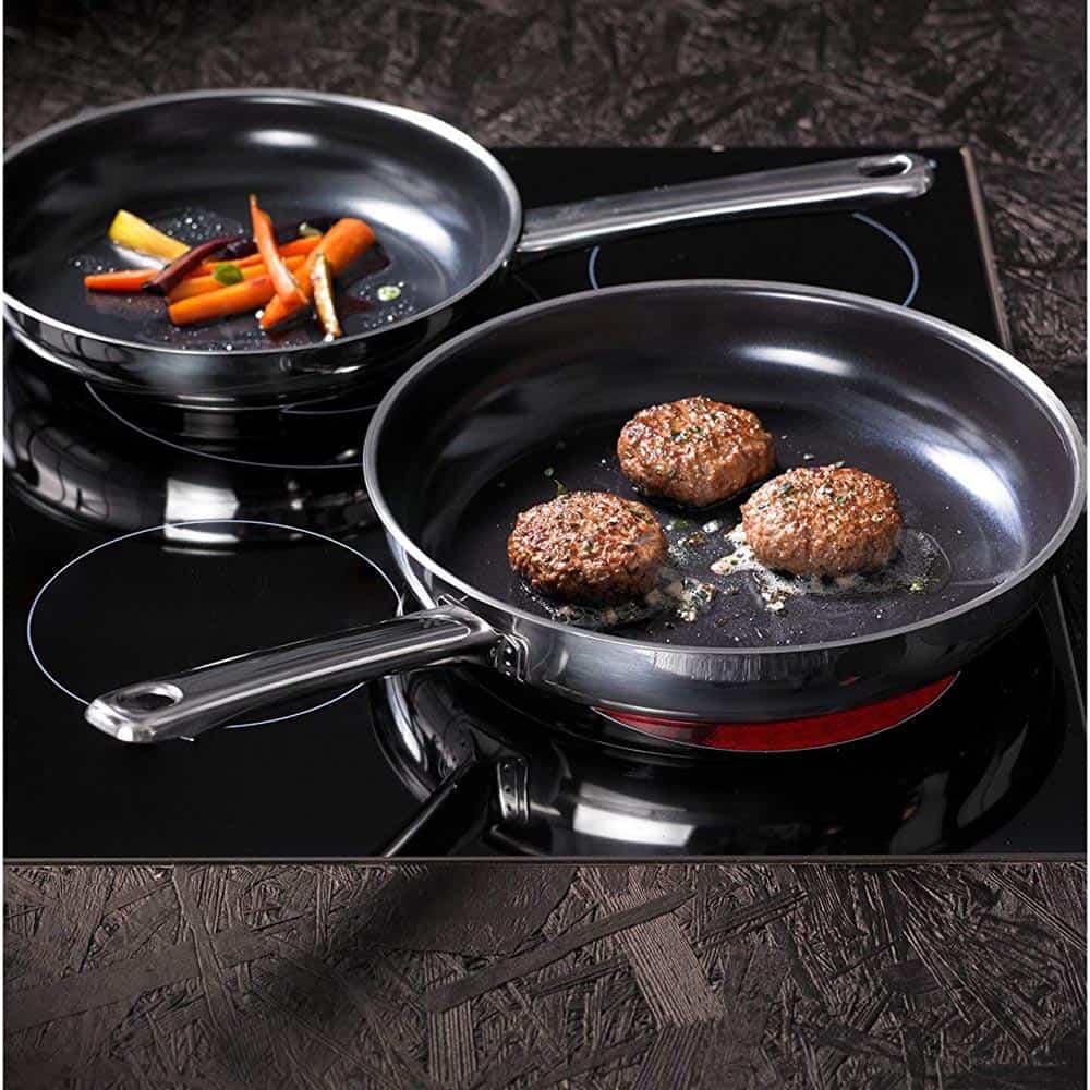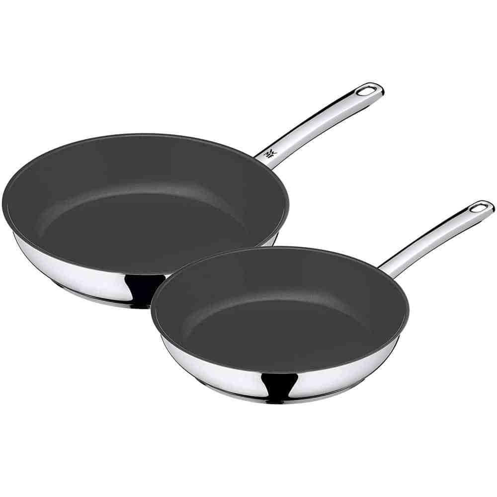 Bộ 2 Chảo Chiên Wmf làm bằng Cromargan®, bền, đẹp, xử lý các axit có hại trong thực phẩm, dễ làm sạch. Với lớp phủ TransTherm® -Allherdboden – chảo chiên WMF thích hợp với tất cả các nguồn nhiệt và cũng dùng được với nhiệt cảm ứng.