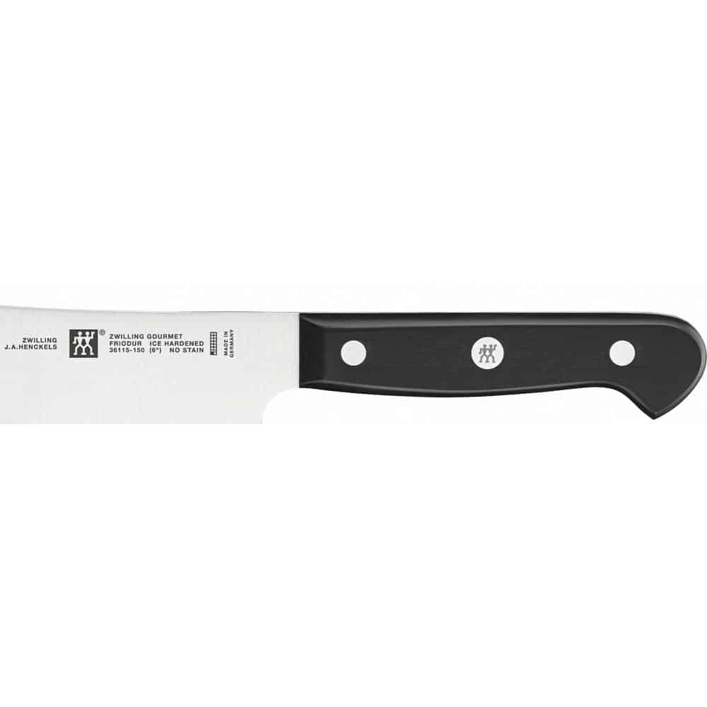 Phần cán dao và lưỡi của dòng sản phẩm Bộ 2 Dao Chặt 15+18cm Zwilling Gourmet 36130-000-0 được liên kết bằng các đinh tán với logo của Zwilling và nhựa nguyên khối đặc trưng của các dòng sản phẩm của Zwilling cực kỳ chắc chắn mang đến sự an toàn và tăng tuổi thọ cho sản phẩm. Thiết kế cán dao dạng uốn lượn cho cảm giác cầm tốt hơn khi phải sử dụng dao trong thời gian dài.