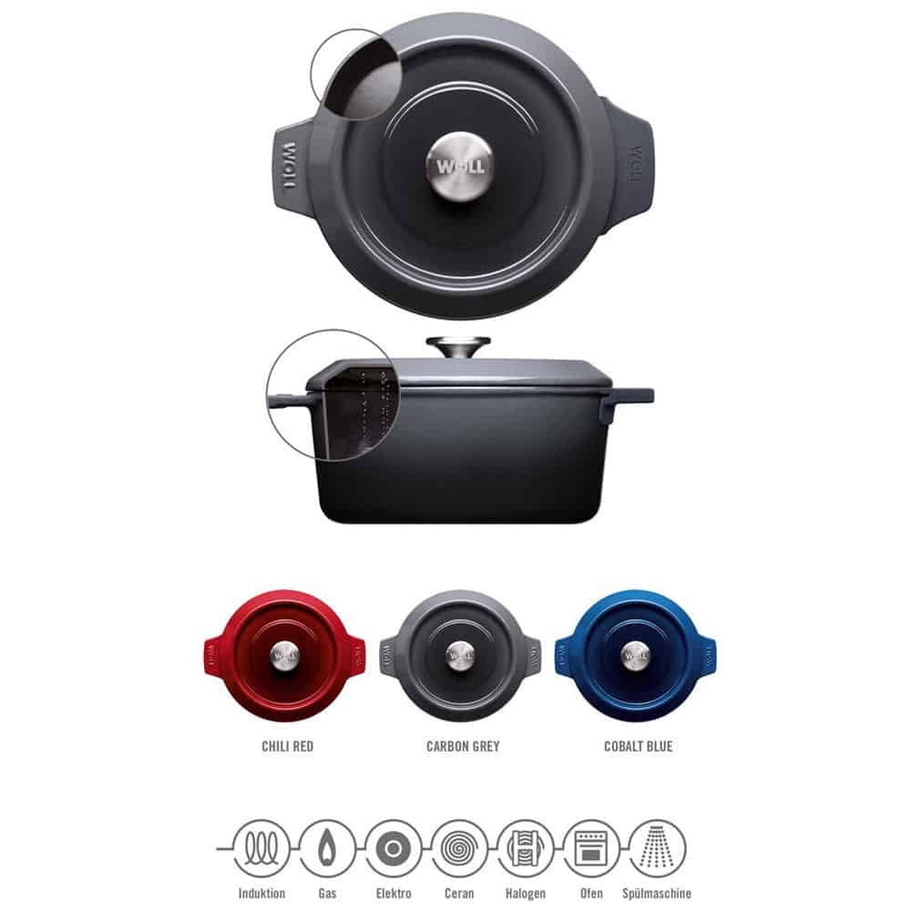 Bộ 2 Nồi Gang Woll 110CI-020 Size 10cm Blue của Đức được làm theo phương pháp truyền thống, tạo nên nét độc đáo cho mỗi chiếc nồi. Thích hợp cho bếp gas, bếp từ, bếp hồng ngoại và lò nướng có tay cầm bằng silicon, nắp của nó có hình dạng bên trong đặc trưng, giúp hơi nước tuần hoàn bên trong cải thiện khả năng nấu nướng.