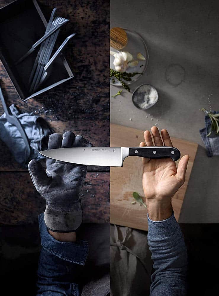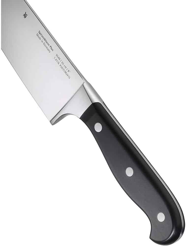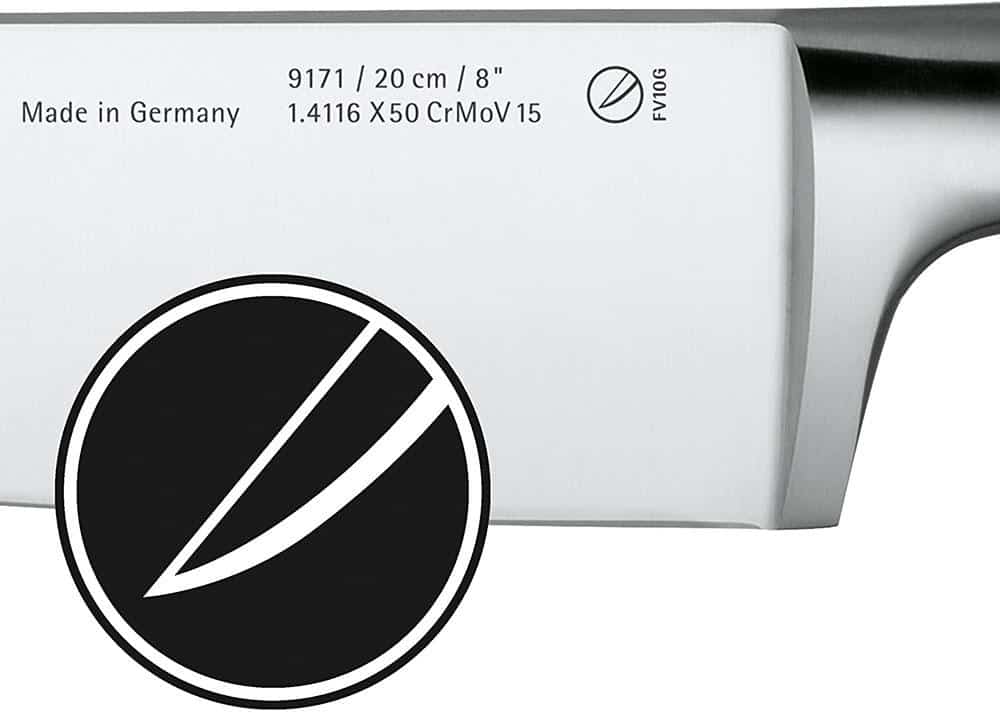 Tất cả dao gia dụng Wmf Spitzenklasse Plus đều được làm bằng thép lưỡi cứng đặc biệt, được gọi là thép crom-molypden-vanadi 15%. Vật liệu đảm bảo độ sắc nét và độ đàn hồi đặc biệt, khả năng chống ăn mòn và độ bền cắt dài. Tất cả các lưỡi đều chống gỉ và chống axit.