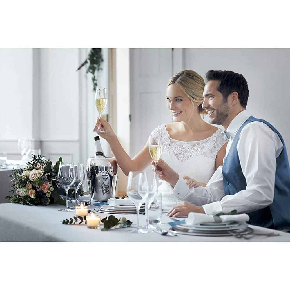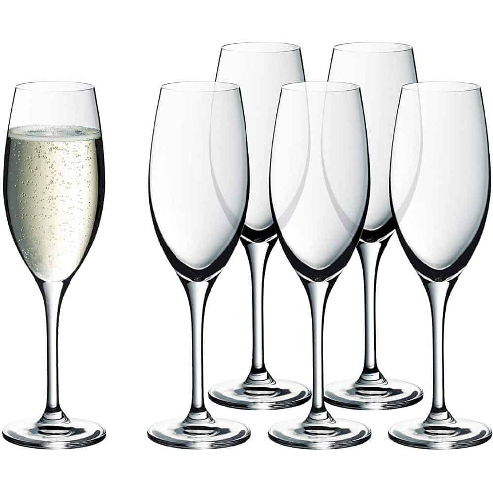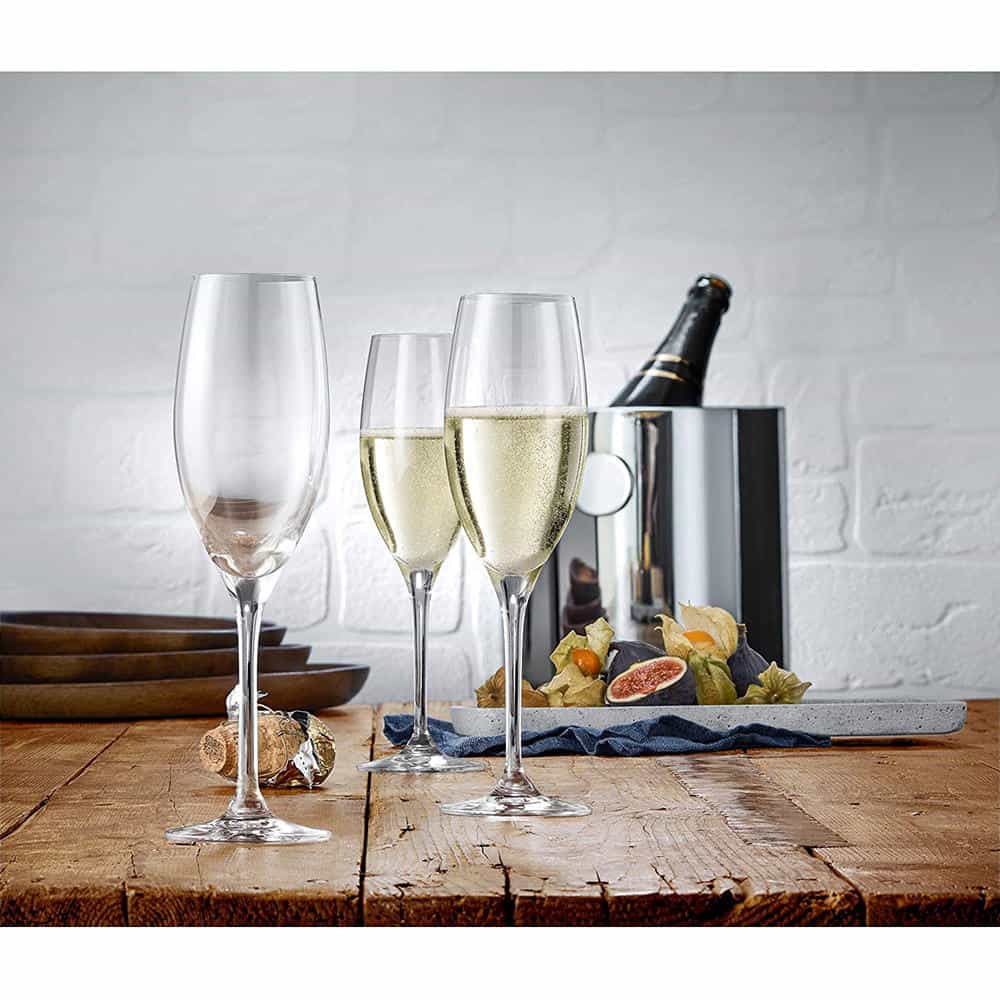 Cho dù đó là chai rượu sâm panh, rượu vang trắng sủi bọt, rượu vang đỏ sủi tăm hay rượu vang nổ – tất cả các loại rượu vang sủi bọt này đều có một điểm chung: chúng ta sẽ được thưởng thức tốt nhất từ một ly sâm panh hẹp. Điều này không chỉ trông đặc biệt phong cách mà rượu vang sủi bọt còn giữ được lâu hơn, vì carbon dioxide không bay hơi nhanh như trong ly mỏng. Bộ 6 Ly Champagne WMF sẽ là sự lựa chọn tốt nhất cho bạn vì lý do thị giác thuần túy: xét cho cùng, những “viên ngọc trai” đựng sâm panh sáng lấp lánh đặc biệt đẹp mắt.