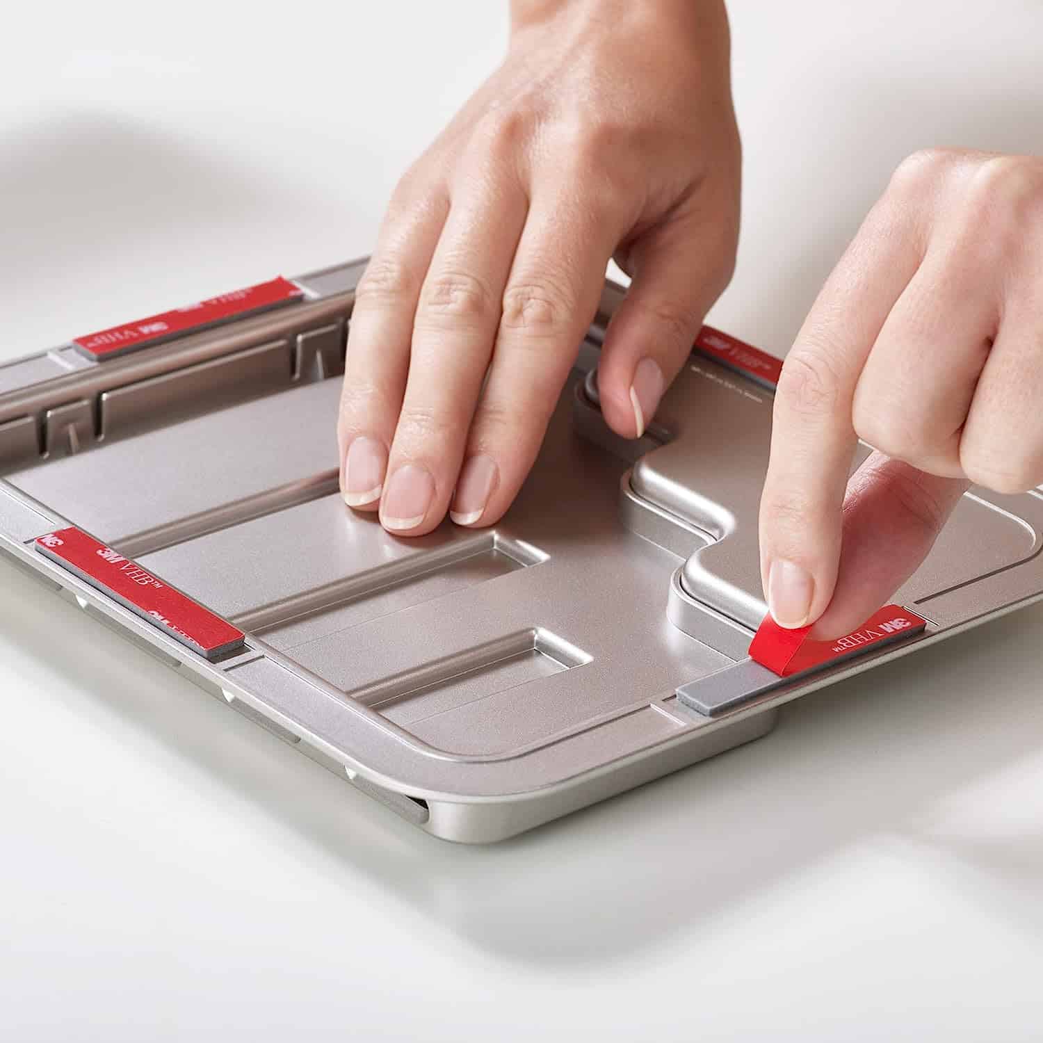 Dễ dàng lắp đặt bằng băng dính 3M VHB, bạn có thể gắn đốc bộ dao làm bếp 4 món Joseph Joseph DoorStore 10303 lên cánh tủ, tường hoặc bất cứ vị trí nào trong bếp.