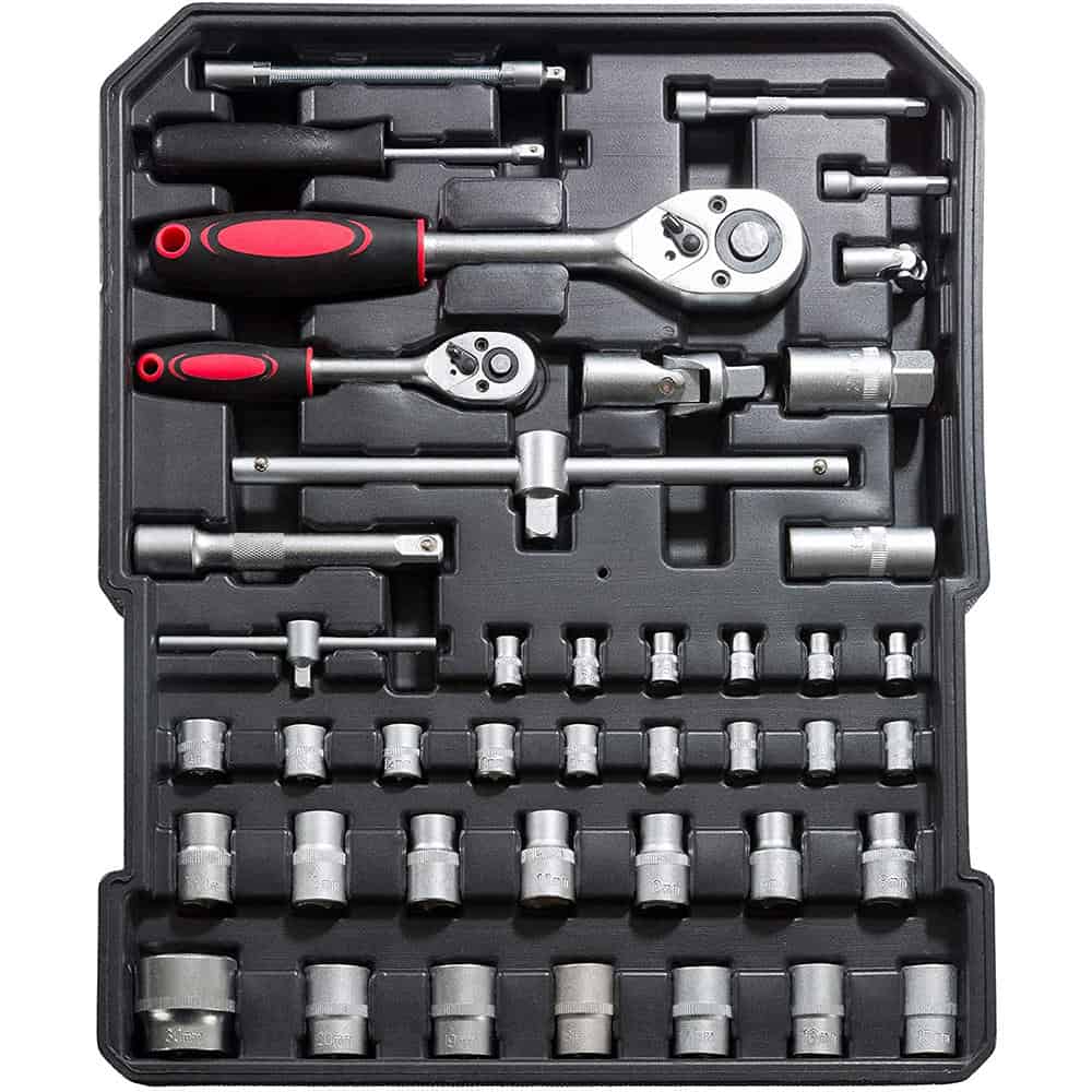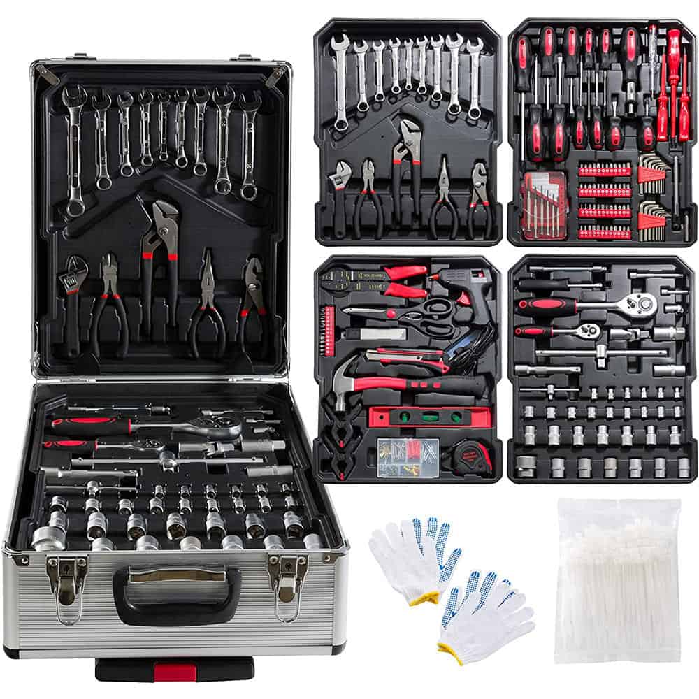 Bộ công cụ phong phú, bao gồm 1200 chi tiết, tích hợp bánh xe, tay cầm dạng ống lồng có thể kéo dài để vận chuyển. Dụng cụ chất lượng cao được làm bằng thép chrome vanadium. Vỏ kim loại chắc chắn, có thể khóa được với 4 ngăn để lưu trữ và tiết kiệm không gian để đảm bảo an toàn tối ưu.
