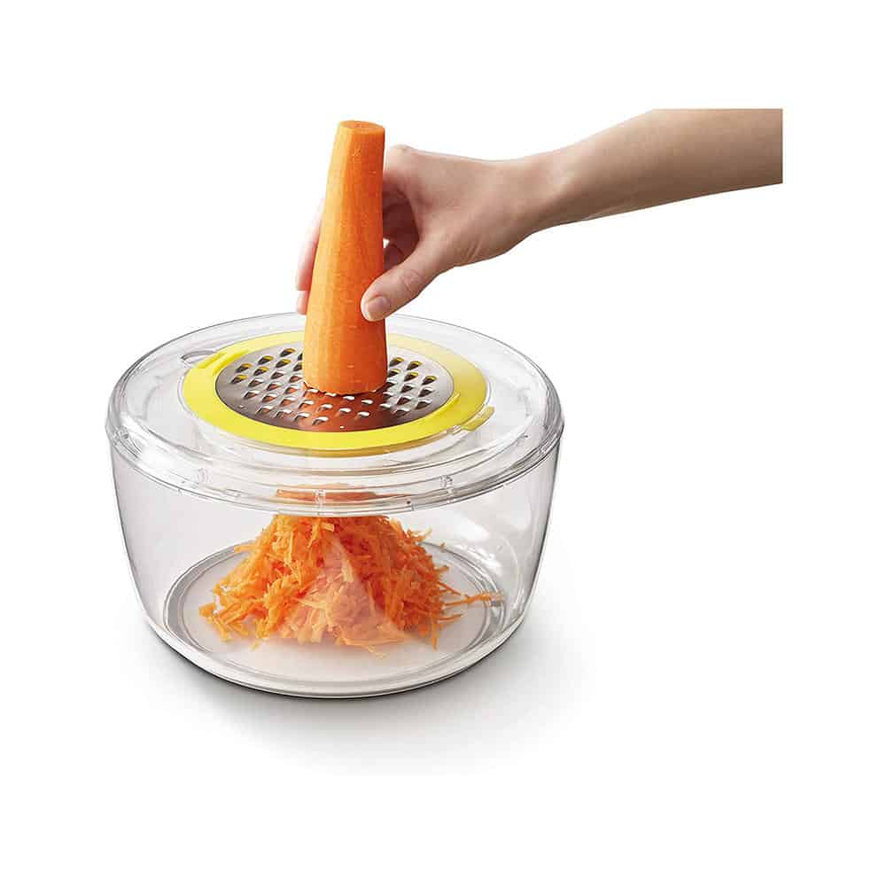 Bộ Dụng Cụ Chế Biến Salat 4 Món Joseph Joseph 20154 Multi-Prep được thiết kế nhỏ gọn Với bình được làm bằng thủy tinh trong suốt chịu lực,nhựa bền,các lưỡi dao sắc bén.
