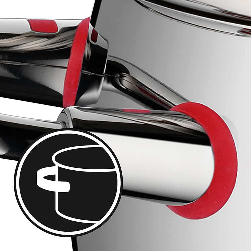 Bộ Nồi Nấu Ăn WMF Quality One, 4 Món nhờ thiết kế này giúp người dùng không bị nóng nhờ Công nghệ Cool, đã được cấp bằng sáng chế, dễ dàng nhận biết bằng các chấm đỏ báo hiệu.
