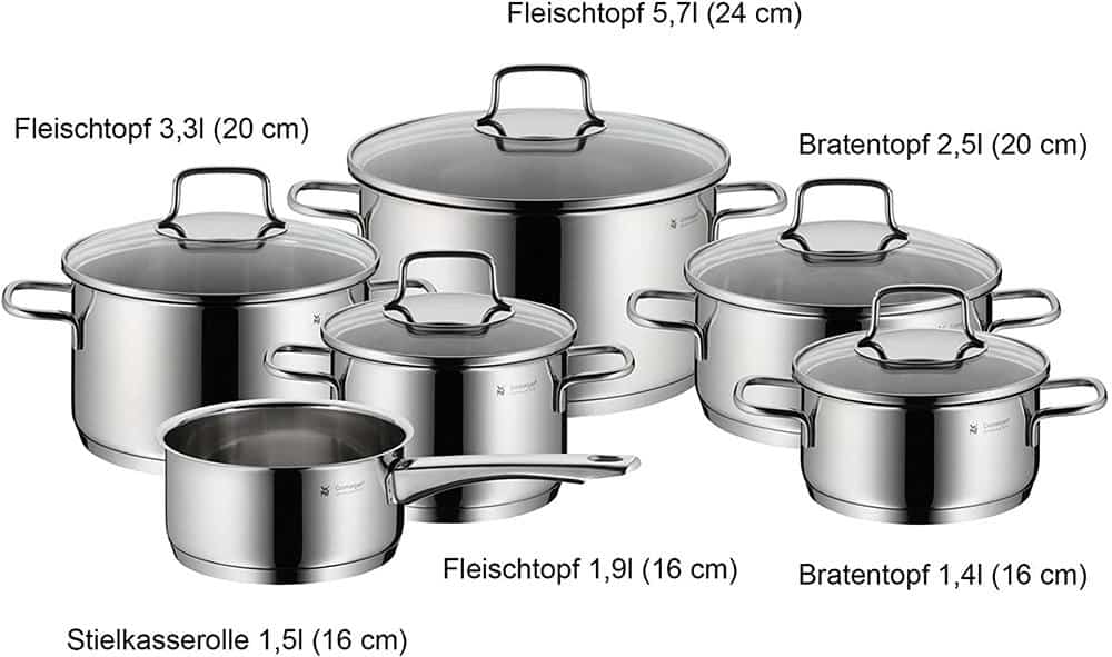 Tính Năng Bộ Nồi WMF Astoria 780166040 Bạc 6 Món, Thép Không Gỉ
