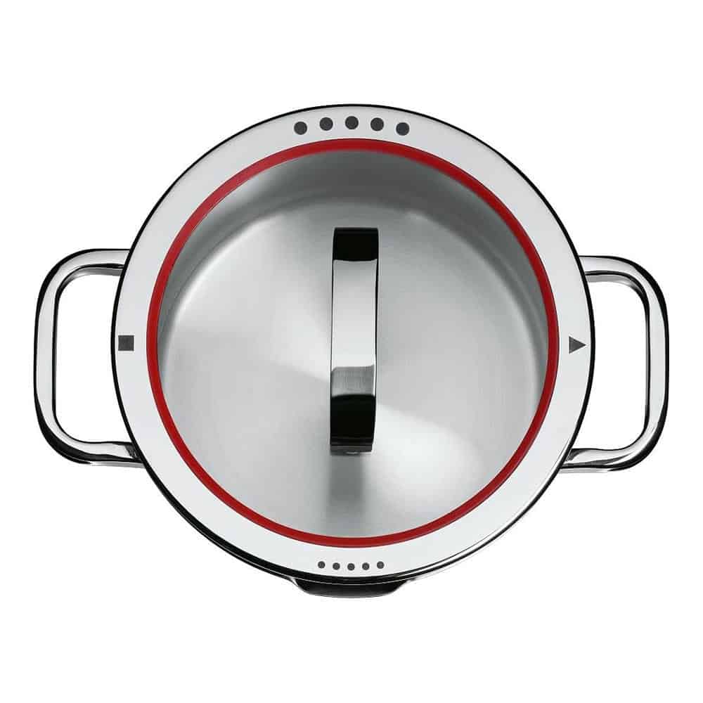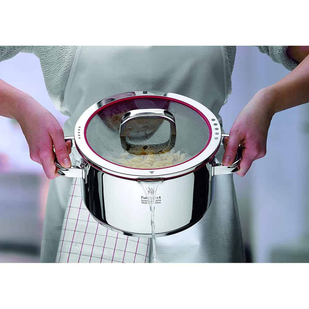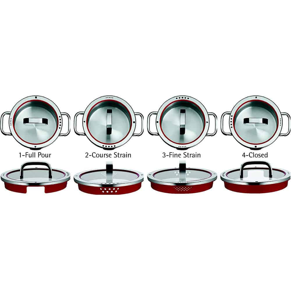 Bộ Nồi WMF Function 4 Món có nắp thủy tinh có thể được điều chỉnh ở 4 vị trí được đánh dấu (4 chức năng). Tùy thuộc vào vị trí, nó sẽ có mỗi chức năng khác nhau.