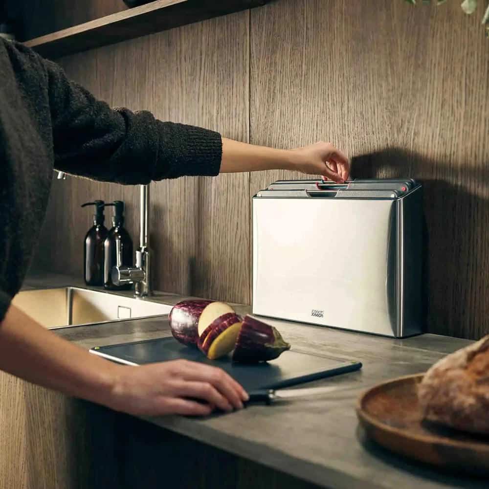 Bốn thớt Joseph Joseph được đặt trong hộp bằng thép không gỉ với thanh cầm cũng bằng thép không gỉ để có thể dễ dàng nhấc ra bằng tay. Vỏ hộp có khả năng chống dấu vân tay và bề nhẵn, bóng trông rất đẹp mắt và sang trọng. Giữa các thớt có khoảng cách đủ để không khí lưu thông khiến cho thớt luôn được giữ sạch sẽ, khô, thoáng, không ẩm mốc
