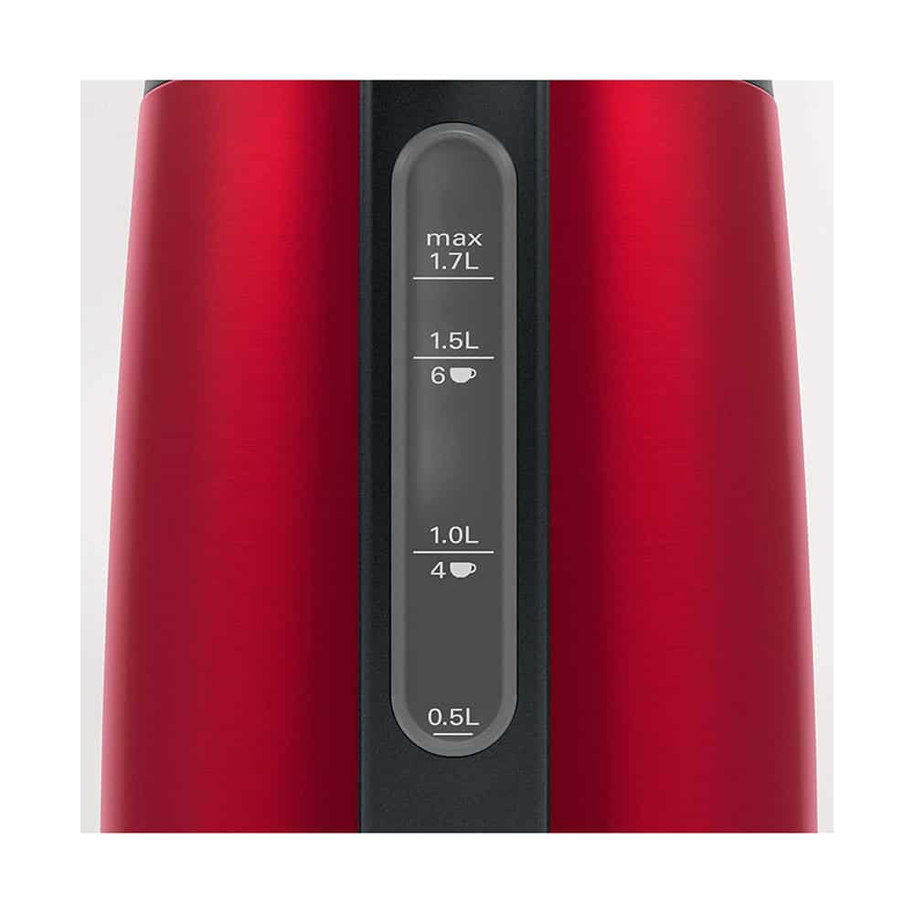 Bình Siêu Tốc Bosch TWK3P424 Designline 1,7L được làm từ chất liệu thép không gỉ, bên ngoài phủ sơn màu đỏ.