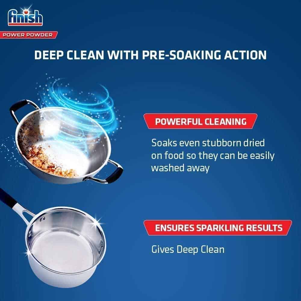 - Trong thành phần bột rửa bát Finish Classic có chứa các hoạt chất có khả năng ngấm sâu vào các vết bẩn khô cứng.