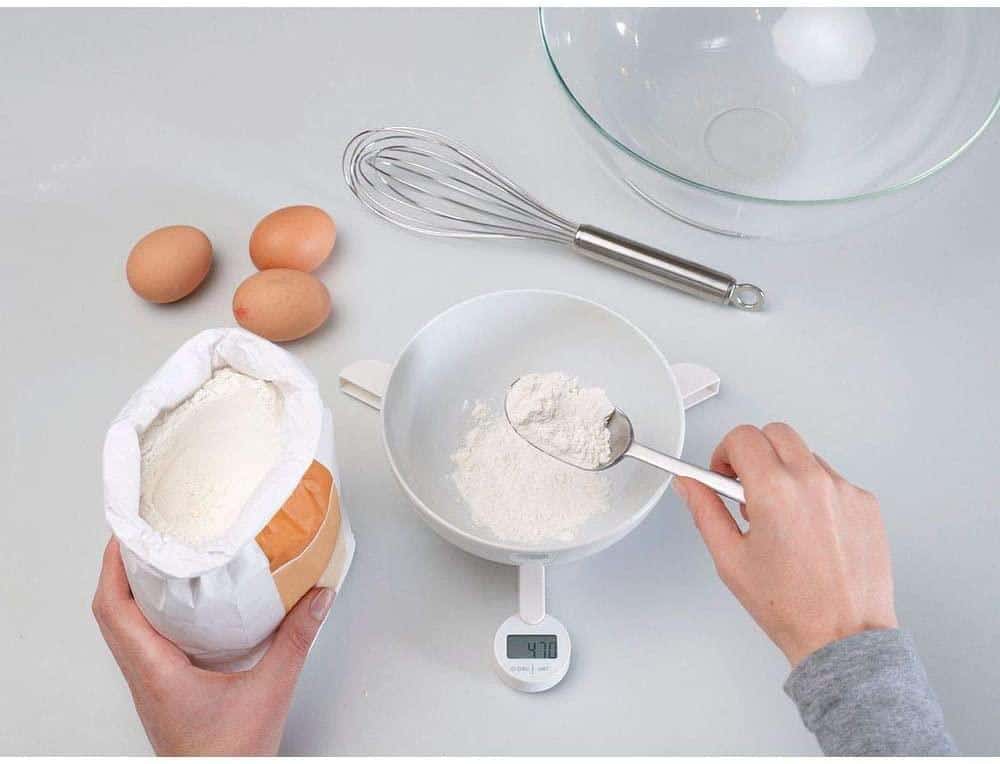 Chức năng Thêm & Cân tiện lợi cũng cho phép đo nhiều nguyên liệu trong cùng một bát trong quá trình chuẩn bị công thức.