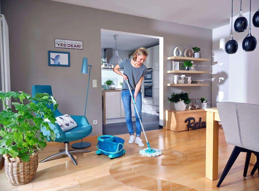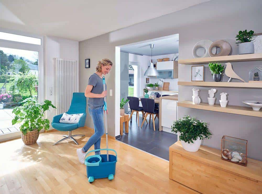 Cơ chế thiết kế tay cầm được cấp bằng sáng chế của Leifheit giúp cây lau nhà có thể được đẩy qua lại một cách dễ dàng ngay cả khi người dùng đang đứng.
