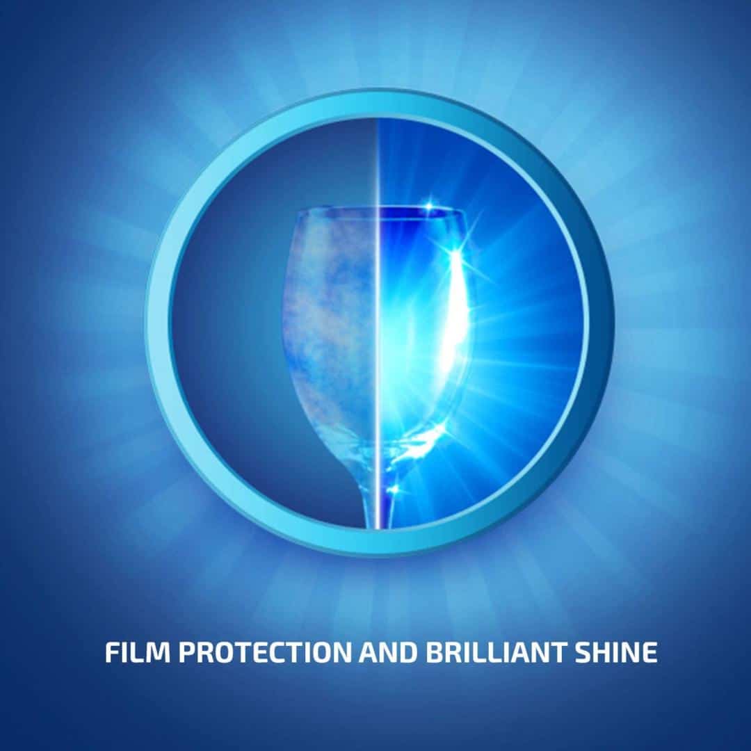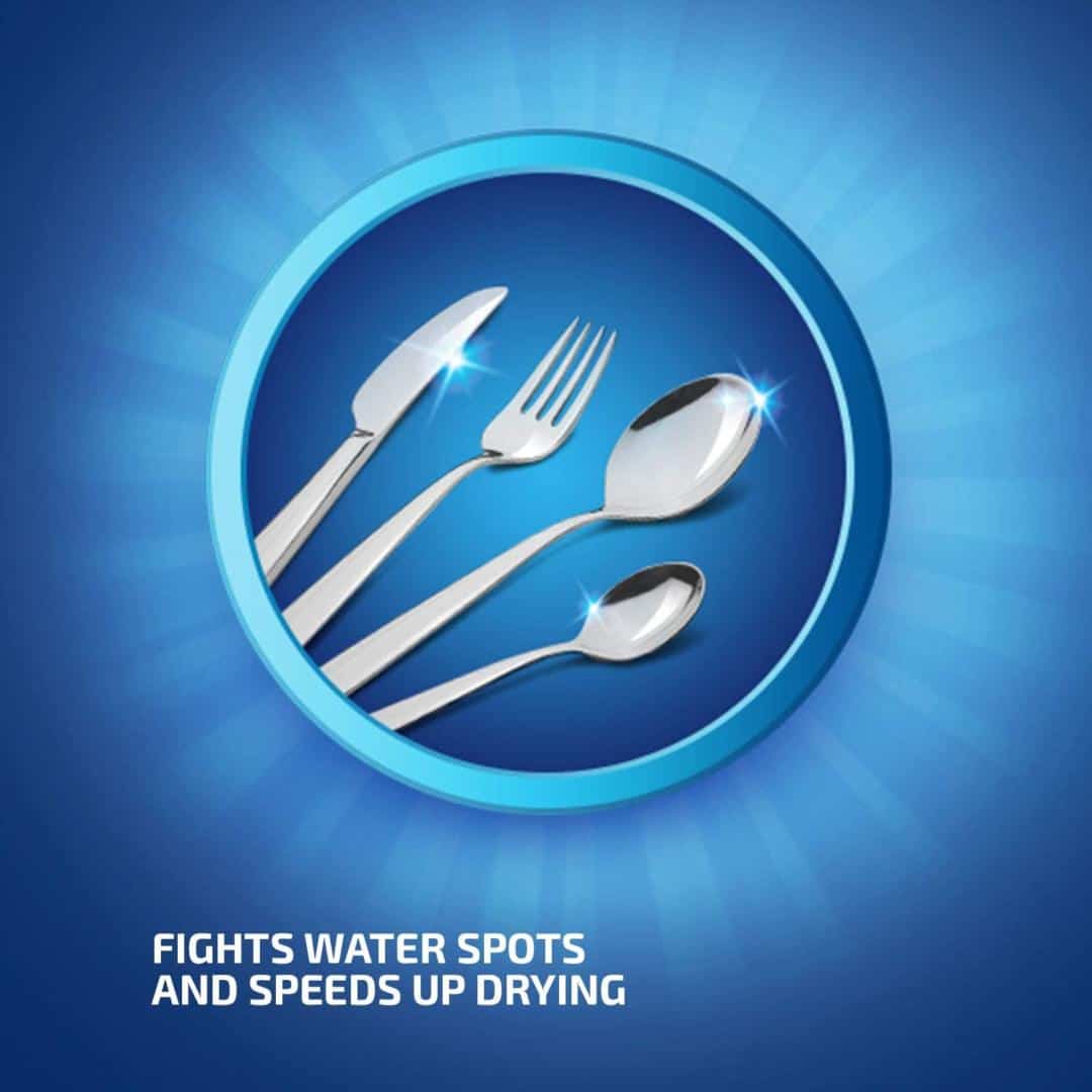 - Nước làm bóng Finish Rinse Aid tăng cường gấp 5 lần việc bảo vệ bát, đĩa.