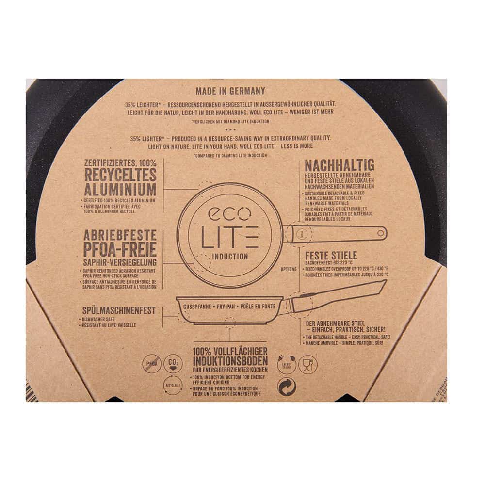 Các sản phẩm chảo chống dính đến từ thương hiệu Woll luôn được thiết kế rất tiện lợi với phần tay cầm có thể tháo rời được. Điều này rất hữu dụng như khi có trẻ em trong bếp; các bạn có thể dễ dàng đặt chảo vào trong lò nướng; khi cần vệ sinh chảo cũng có thể tháo rời tay cầm để sử dụng trong máy rửa bát hoặc các bạn có thể dễ dàng sắp xếp vào trong các ngăn tủ khi chưa sử dụng đến. Tay cầm của Woll Eco Lite Try 1524ELI được thiết kế chắc chắn từ các nguyên liệu thân thiệt với môi trường – sử dụng khoảng 40% bột gỗ và bột hạt ô liu.