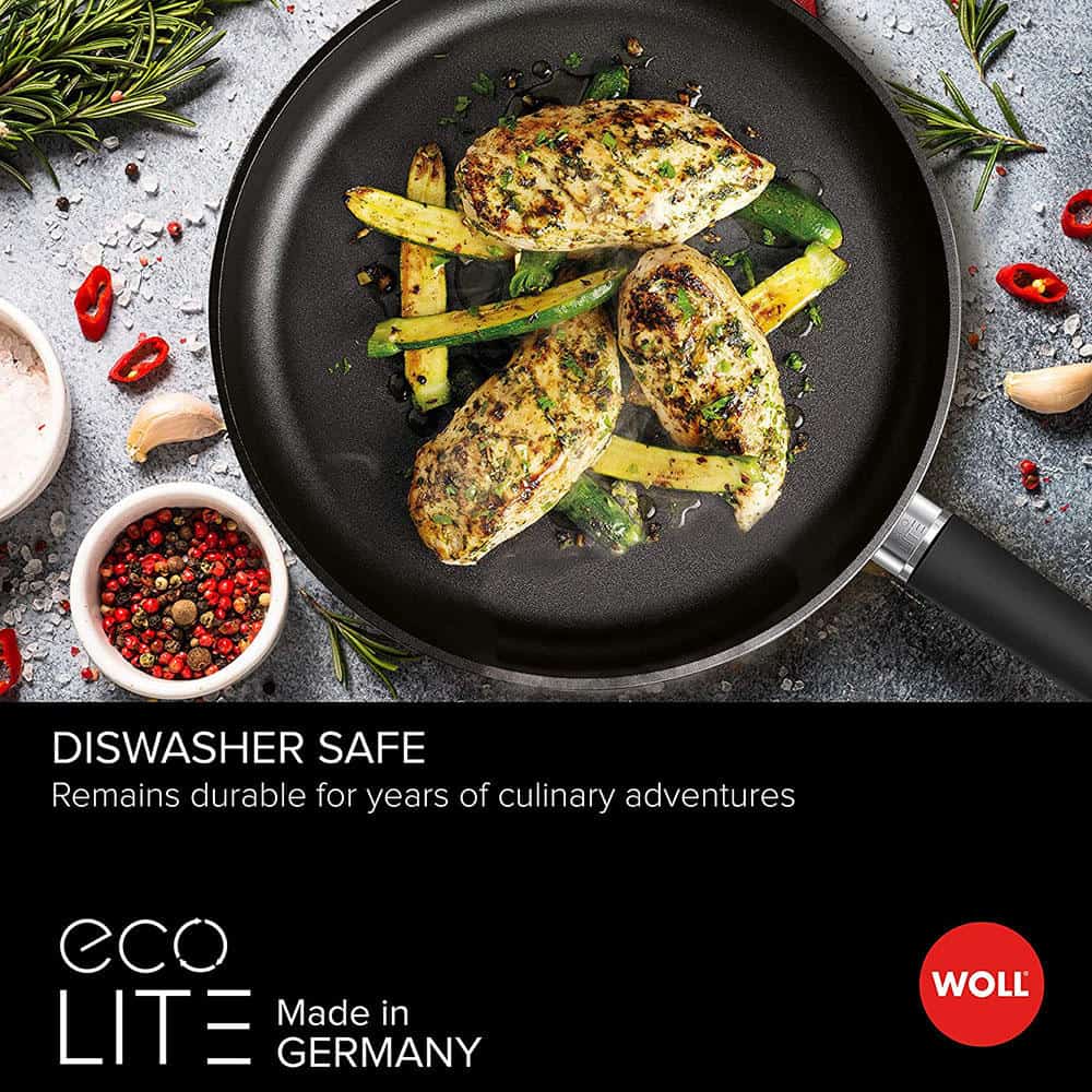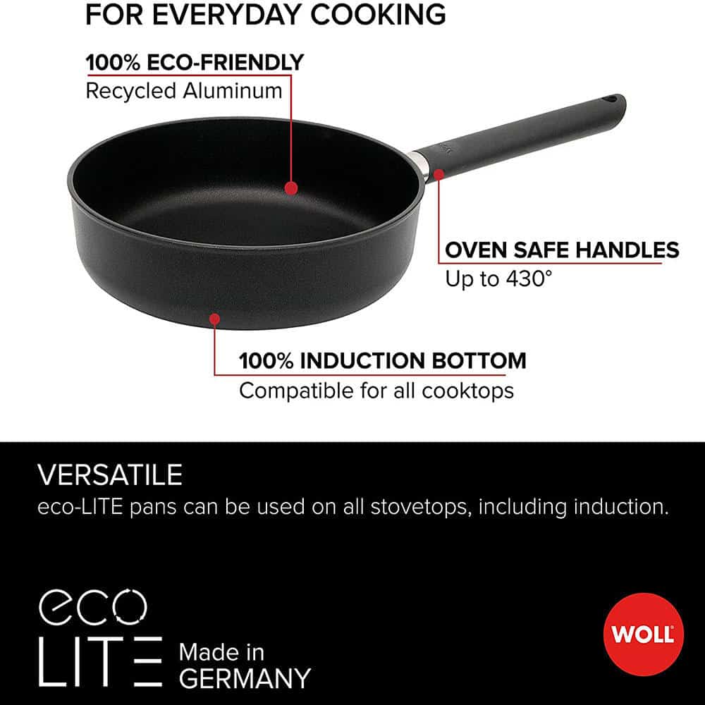 Gia Dụng Đức Đà Nẵng xin giới thiệu đến các quý khách hàng dòng sản phẩm chảo chống dính thuộc bộ sưu tập Eco Lite đến từ thương hiệu Woll của Đức. Tất cả các sản phẩm thuộc bộ sưu tập đều sử dụng các vật liệu tái chế và thân thiện với môi trường, tiết kiệm nhưng vẫn đảm bảo tính hiệu quả của sản phẩm. Với kinh nghiệm trên 40 năm trong lĩnh vực sản xuất chảo chống dính các sản phẩm của Woll luôn được đánh giá về chất lượng, hoàn hảo và uy tín bậc nhất trên thế giới. Sản phẩm Chảo Gang Woll Eco Lite Saute 724ELI chắc chắn sẽ làm hài lòng quý khách, với kích thước 24cm, sản phẩm được đúc bằng nhôm nguyên khối, lớp chống dính chất lượng cao được gia cố bằng saphire chống mài mòn hiệu quả, với quy trình sản xuất hiện đại tiêu chuẩn châu âu. Chọn chất lượng chọn an toàn và góp phần bảo vệ môi trường hãy nghĩ ngay đến Chảo Gang Woll Eco Lite Saute 724ELI.
