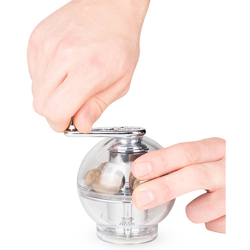 Cối Xay Hạt Nhục Đậu Khấu Peugeot Tidore 19501 được thiết kế để xay hạt nhục đậu khấu hiệu quả nhờ lưỡi dao kép mà không gây nguy hiểm tới các ngón tay của người sử dụng. Cơ chế xay mịn này được ẩn chứa ở trong phần trung tâm của sản phẩm, được bao bọc trong một thiết kế trong suốt có thể nhìn rõ ràng được những hạt nhục đậu khấu phía trong. Trang bị ngăn đựng này của cối cho phép người dùng đặt từ 7, 8 hạt vào phía trong thuận tiện trong quá trình thao tác.