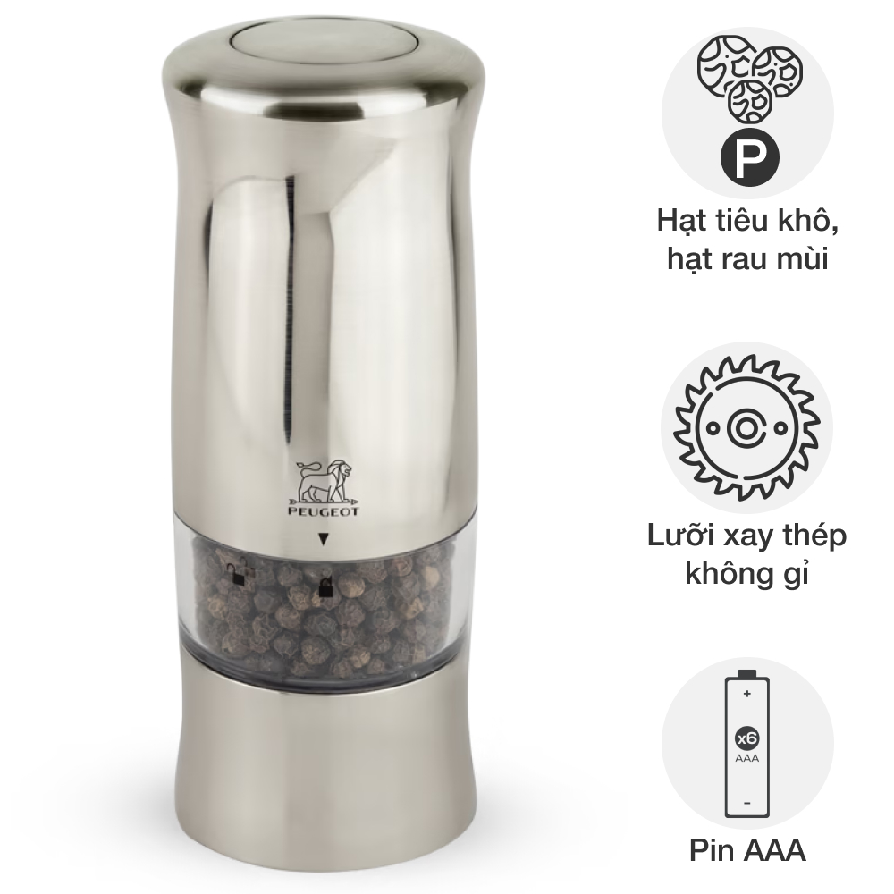 Thông số kỹ thuật và tổng quan sản phẩm Cối xay tiêu chạy pin Peugeot 24079 Zeli 14 cm