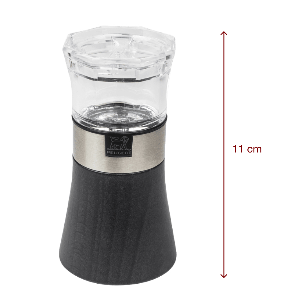 Cối xay tiêu kèm rắc muối Peugeot Oslo ra mắt 2 phiên bản độc đáo: Acrylic trong suốt và Gỗ dẻ gai Xám Graphite. Cả hai phiên bản đều có kích thước nhỏ gọn, vừa vặn trong lòng bàn tay, giúp bạn dễ dàng sử dụng và bảo quản. Chiều cao của cối xay lần lượt là 13 cm (phiên bản acrylic) và 11 cm (phiên bản gỗ dẻ gai), tạo nên một điểm nhấn tinh tế trên bàn ăn.
