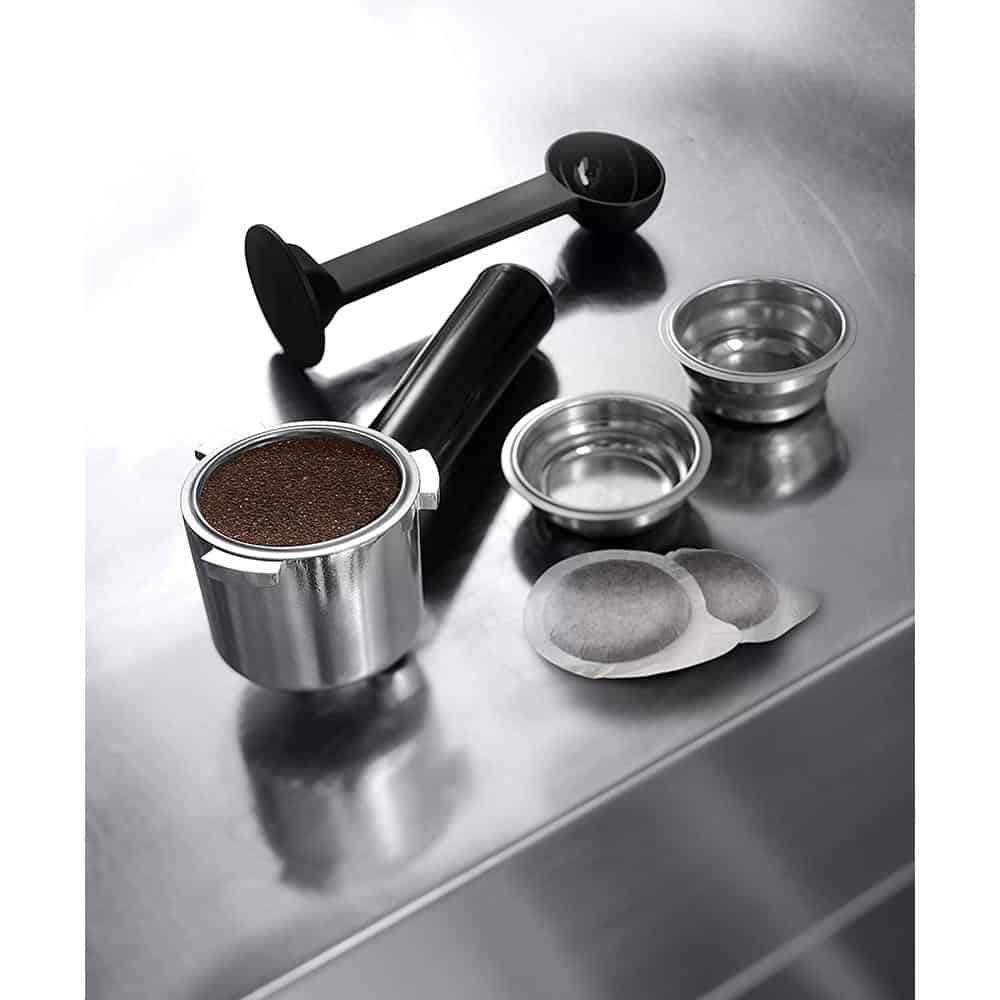 Sản phẩm Máy Pha Cà Phê Delonghi EC685.R Dedica Màu Đỏ được trang bị bộ lọc dạng 2 trong 1 độc đáo, cho phép sử dụng cà phê dạng bột hoặc cà phê túi lọc tiện lợi ( espresso ESE – Easy Serving Espresso ). Chỉ cần đặt epresso ESE vào bộ lọc là bạn có ngay ly cà phê đậm chất Ý.