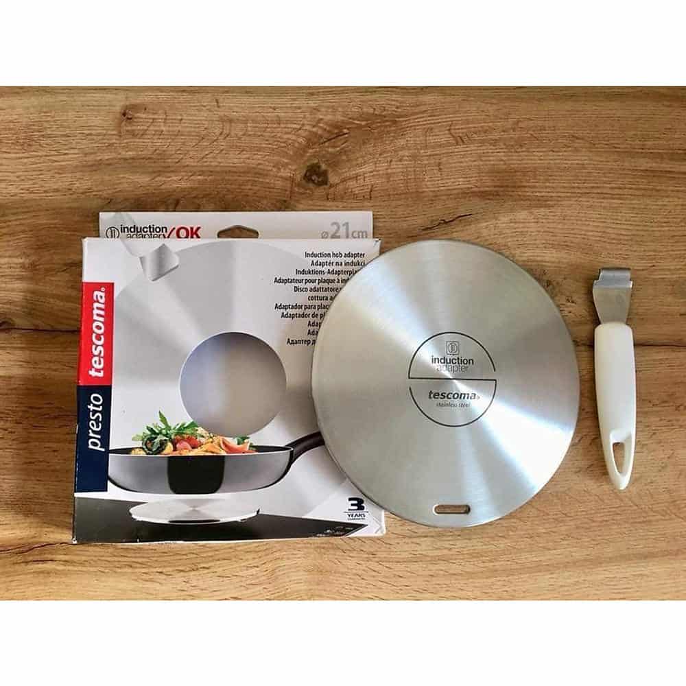 - Đĩa chuyển nhiệt Tescoma 428774 là tấm thép không gỉ dùng làm miếng lót cho bếp từ.