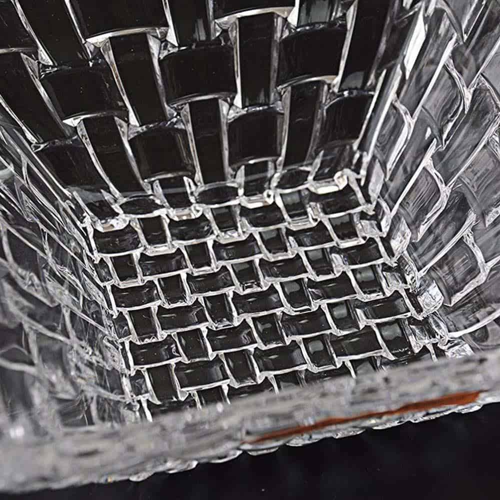 Nhìn qua giống như được đan lát từ ánh sáng và độ trong suốt: cấu trúc giỏ rực rỡ lấp lánh ở vô số khía cạnh và phá vỡ độ chiếu sáng của ánh sáng trong một hoa văn trang trí, độc đáo. Người ta gần như có thể nghĩ rằng một viên kim cương cắt được ẩn trong vẻ ngoài tinh thể này – một sức hấp dẫn mà mắt thường không thể có đủ. Và nếu nước tràn vào, những bài báo này sẽ gây bất ngờ với hiệu ứng gương rất đặc biệt.