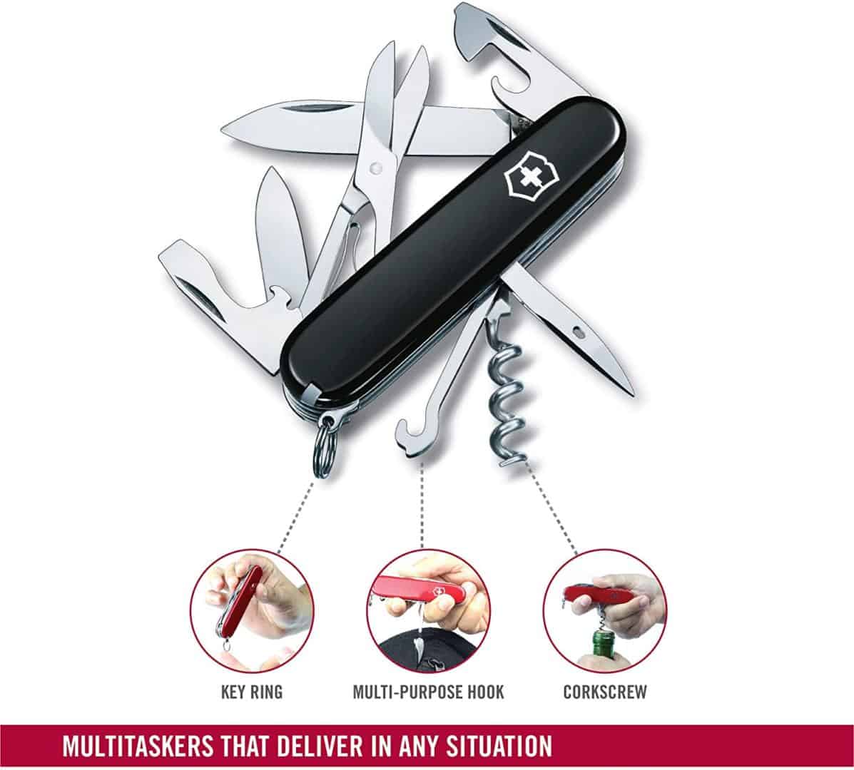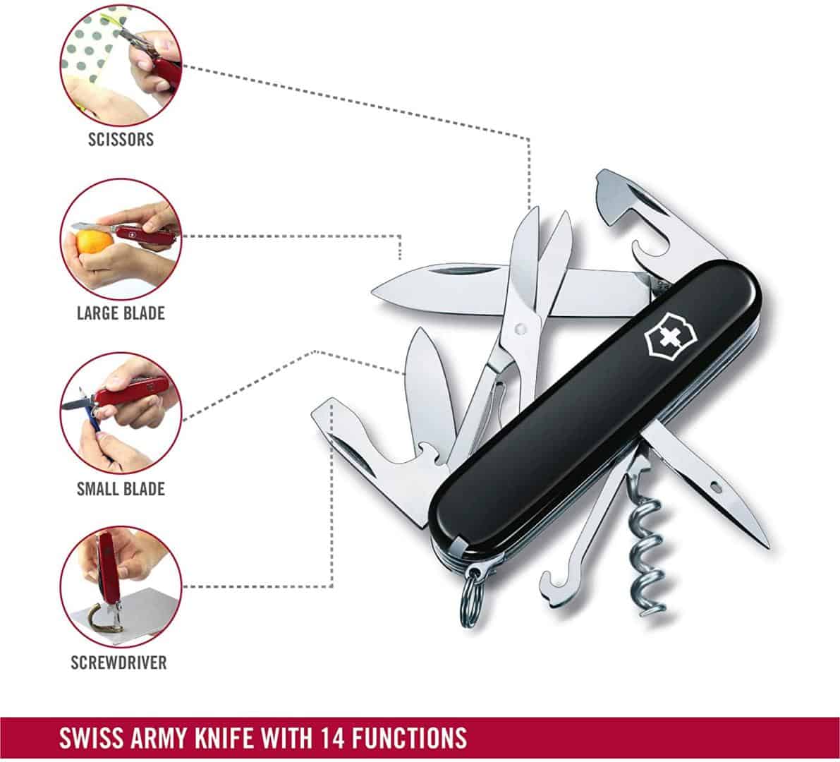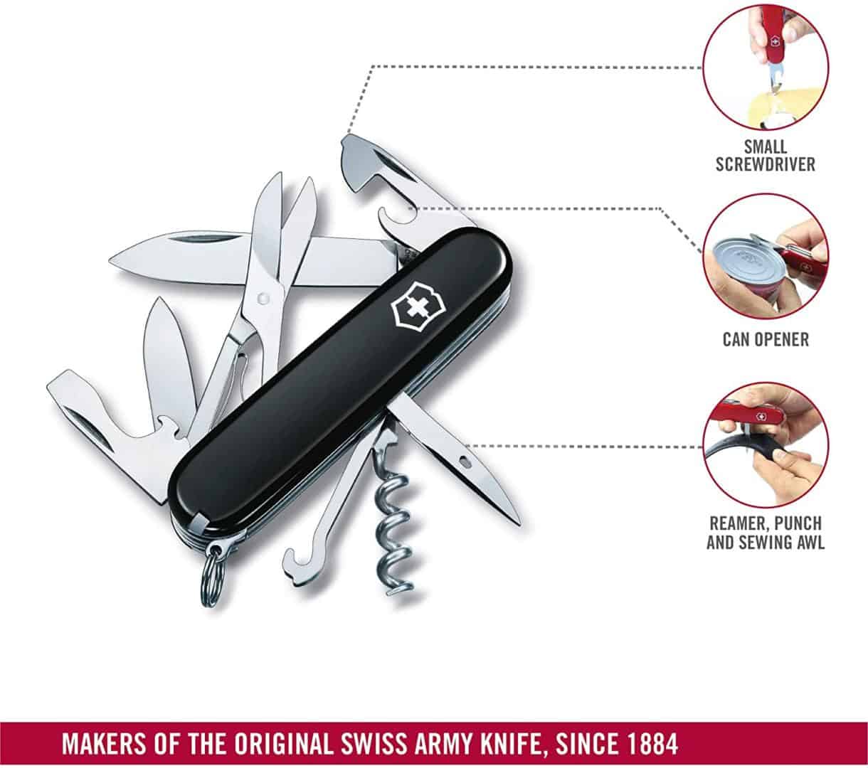 Khi nhắc đến dòng dao xếp đa năng bỏ túi trên thị trường thì không thể không nhắc đến thương hiệu Victorinox đến từ Thụy Sỹ chuyên dụng của Quân Đội được ra đời từ năm 1884, với 14 công dụng tiện lợi, cá tính và đầy trực quan trong một sản phẩm. Một trong số đó chính là Dụng Cụ Đa Năng Victorinox Climber Nero 1.3703.3B1 – Black, hãy cùng Minh Housewares đi vào tìm hiểu chi tiết về công dụng và tiện ích của sản phẩm này nhé !