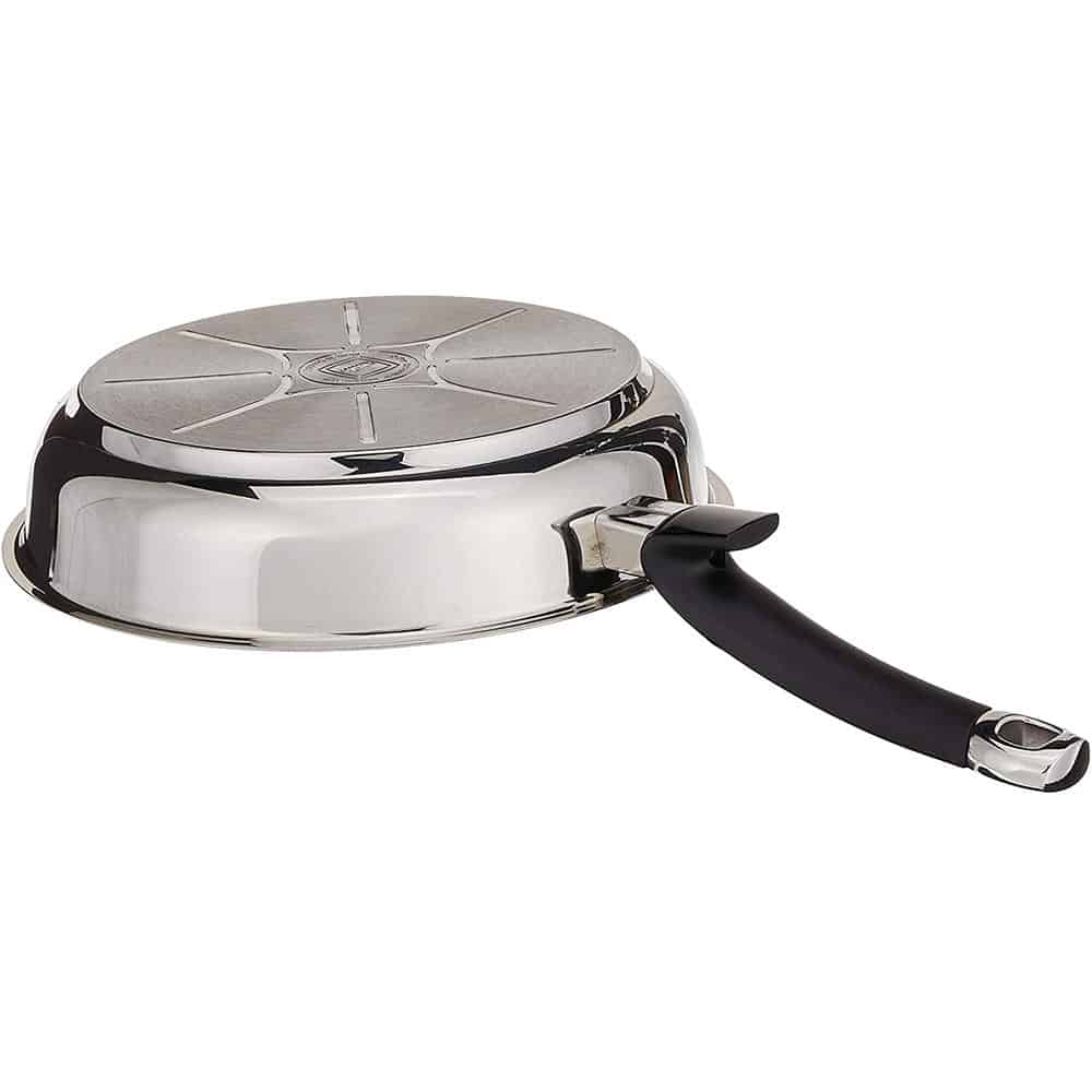Chảo Fissler Protect Steelux Premium 26 cm Lớp đáy được làm với công nghệ Cook Star All-Stove Base (Đây là công nghệ độc quyền của Fissler, có thể chịu nhiệt cao mà không hề bị biến dạng hay để lại vết cháy xém trên chảo) dùng được cho mọi loại bếp và đặc biệt phù hợp với bếp từ.