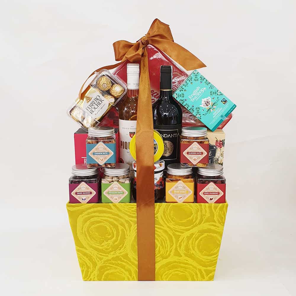 Giỏ Quà Tết Như Ý 3199 – Sắc Màu được thiết kế vô cùng sang trọng biểu trung cho sự quý phái, cát tường. Giỏ quà bao gồm 16 món đồ nhập khẩu xịn xò, chất lượng khác nhau như: Rượu vang, Bánh quy, Cà phê hộp, Kẹo gói, Trà, các loại mứt sấy… kết hợp cùng nhau tạo lên một món quà đầy ý nghĩa, trang trọng dành tặng cho cán bộ công nhân viên doanh nghiệp, bạn bè, gia đình và người thân trong thời khắc năm mới sắp đến.