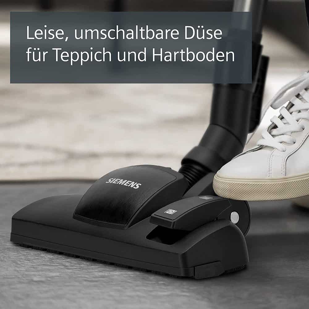 Máy hút bụi Siemens Z 7.0 Grey VSZ7A400 được trang bị nhiều vòi hút khác nhau. Bạn có thể nhanh chóng làm sạch ngay cả những đồ nội thất lớn và loại bỏ lông thú cưng cứng đầu một cách triệt để, làm sạch các góc, khớp và vết nứt một cách dễ dàng một cách triệt để. Đầu hút con lăn có thể đảo ngược điều chỉnh phù hợp với sàn nhà của bạn (thảm hoặc sàn cứng). Bàn chải sàn cứng với hai con lăn và lông mềm có thể dễ dàng đẩy trên sàn.