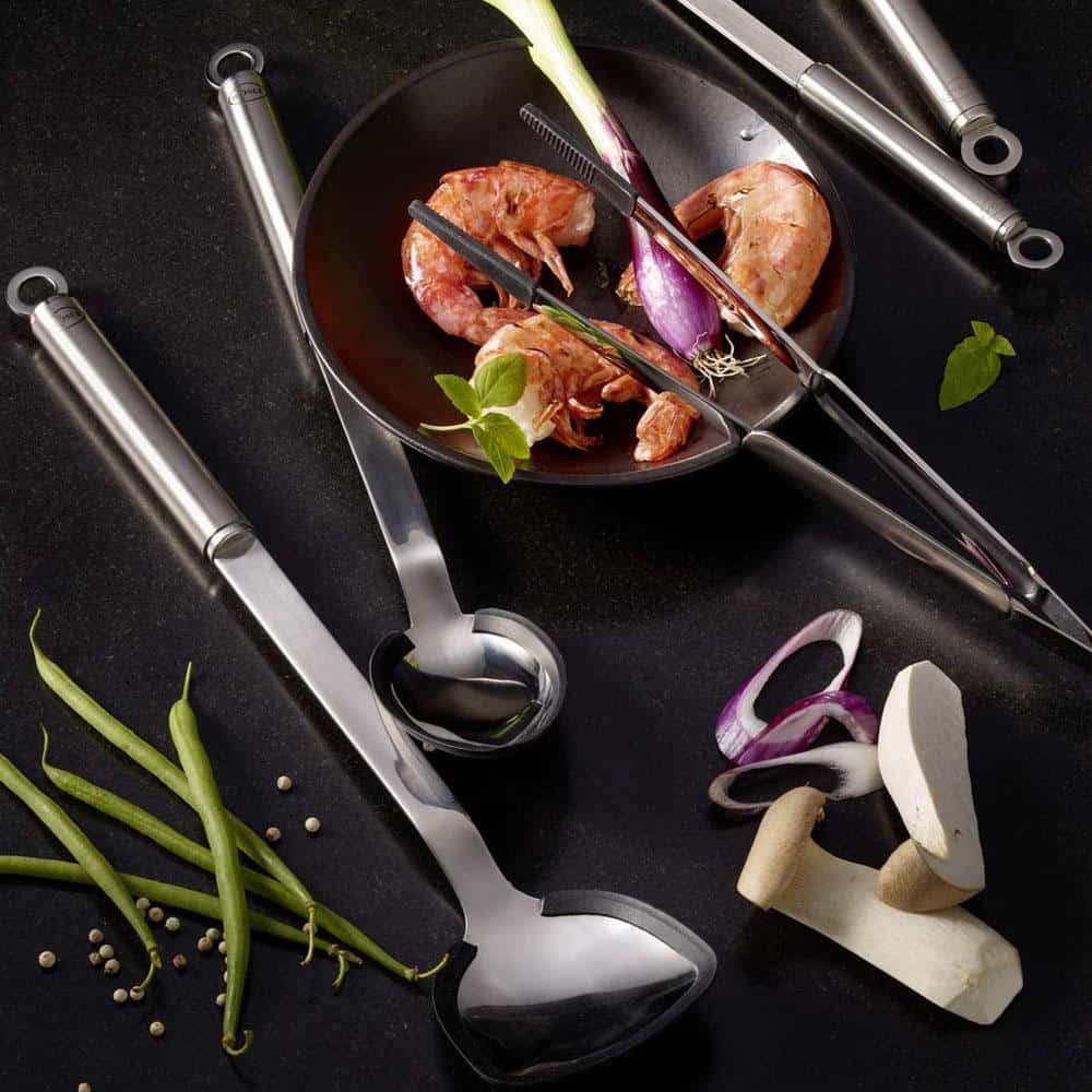 Thiết kế hấp dẫn với sự kết hợp giữa thép không gỉ mờ và có độ bóng cao cũng như silicone đen mịn để tạo ấn tượng thị giác trang nhã, tay cầm thoải mái để xử lý tốt. Đầu silicone thon hẹp bảo vệ các bề mặt nhạy cảm như chảo có lớp chống dính – các rãnh ở bên trong đảm bảo độ bám tốt – với khả năng chịu nhiệt lên đến 260 °C, kìm mũi dài là một công cụ toàn diện thực sự, cho dù ở trong nhà trên bếp hoặc bên ngoài khi nướng.