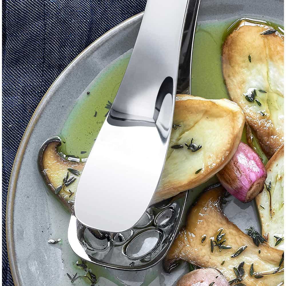 Nhà thiết kế André Stocker đã làm việc một cách rất sáng tạo với những chiếc Kẹp Gắp Thực Phẩm WMF trong bộ sưu tập và phát triển những chiếc kẹp để gắp mỳ ống cũng như măng tây. Ví dụ, Gắp món nấm đùi gà vào đĩa riêng – nhưng nước xốt và dầu thì được tách ra. Dao dĩa đặc biệt và kẹp ổn định về kích thước được làm bằng Cromargan 18/10 đánh bóng với thiết kế đơn giản,bền bỉ với thời gian, chúng phù hợp với bất kỳ bộ đồ ăn kiểu tây.