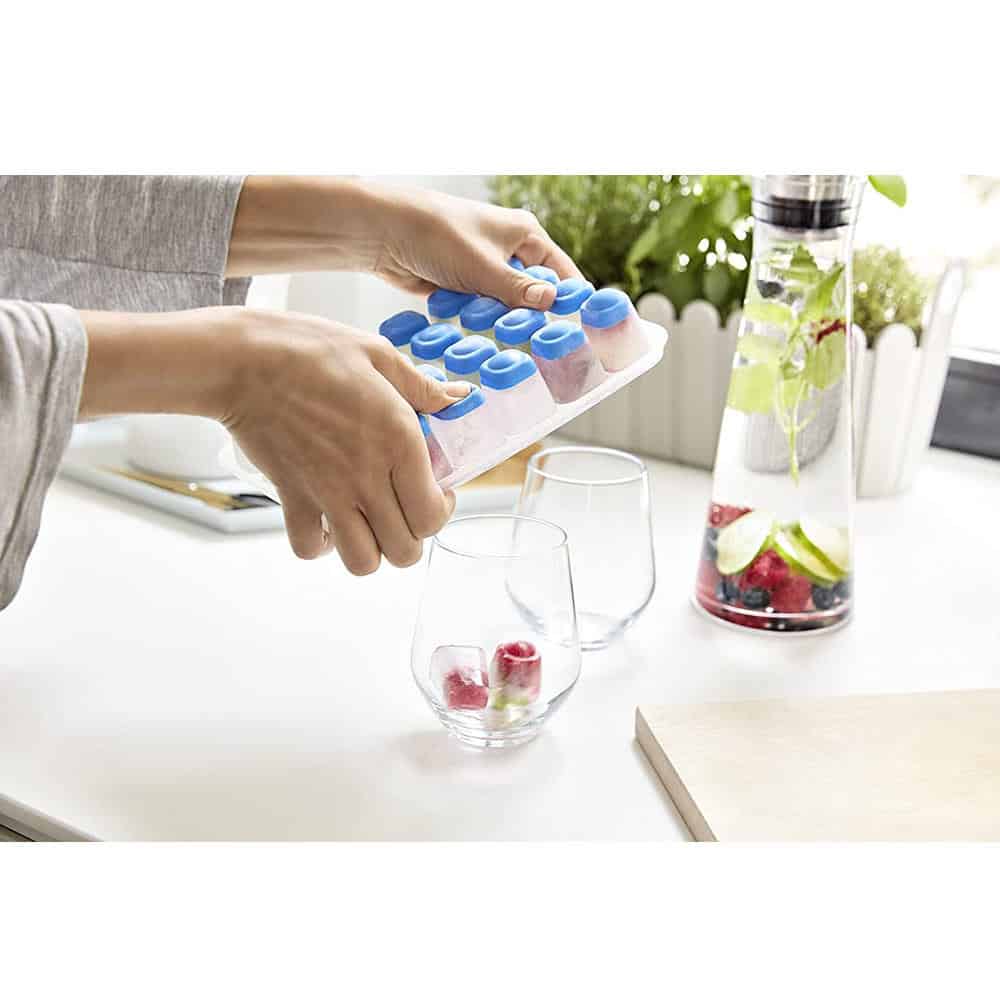 Ngoài ra, để tạo được các viên đá đều nhau chúng ta có thể nghiêng nhẹ khay sau khi cho nước đầy khay. Sản phẩm cũng được thiết kế để sử dụng được cho máy rửa bát khi cần làm vệ sinh.