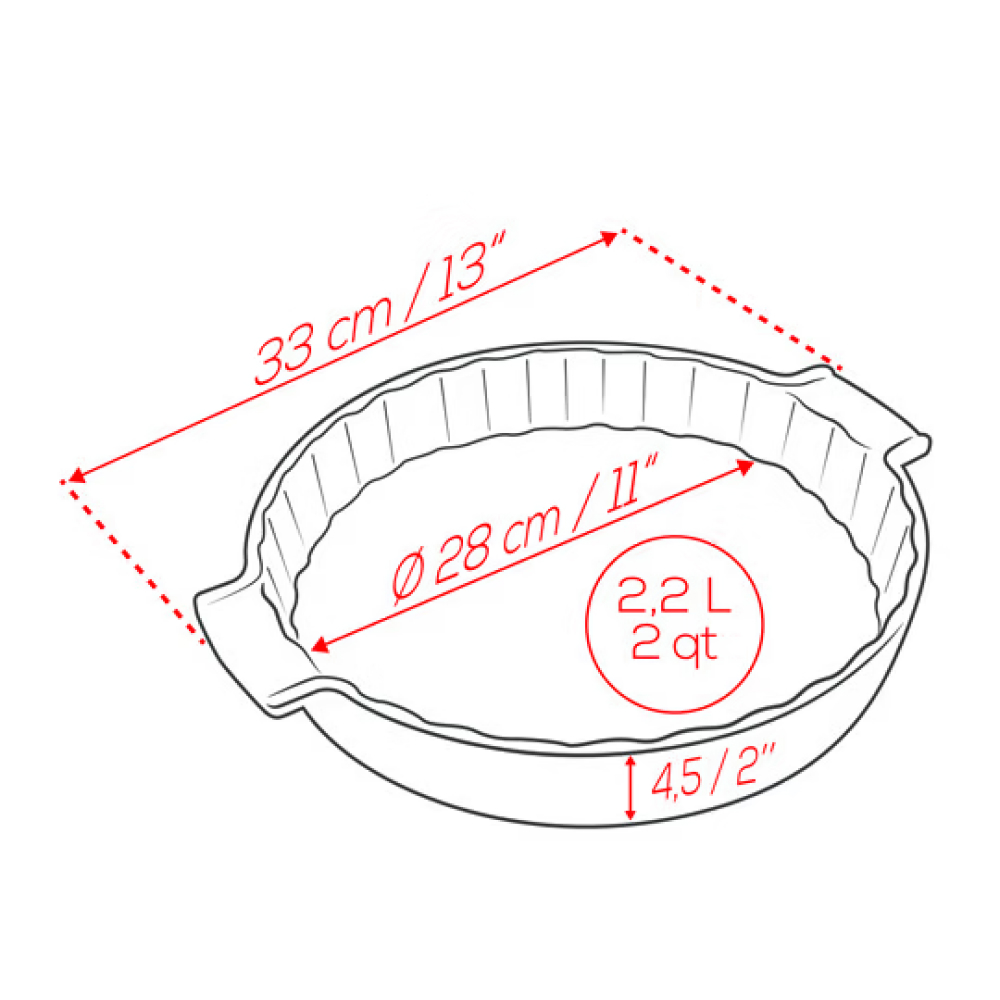 Khay nướng bánh pie gốm Peugeot Appolia có đường kính 28 cm và chiều cao khoảng 4,5 cm, lý tưởng để chế biến những chiếc bánh pie cỡ lớn, đủ phục vụ từ 6-8 người. Với thiết kế hình tròn cổ điển và viền lượn sóng mềm mại, sản phẩm không chỉ tạo hình bánh đẹp mắt mà còn mang đến nét tinh tế cho gian bếp.