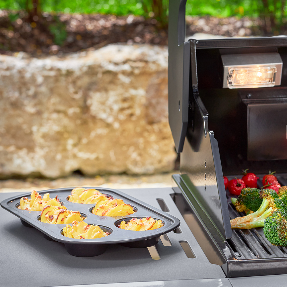 Khay Nướng Thực Phẩm 7cm Roesle 25112 chất lượng cao thích hợp làm các loại bánh nướng xốp, bánh mì nướng hay tạo hình cho các món thịt và nhiều thứ khác để sử dụng trên bếp nướng bằng gas và than có nắp đóng – phụ kiện nướng lý tưởng dành cho tất cả những ai yêu thích việc ăn uống và nướng BBQ.