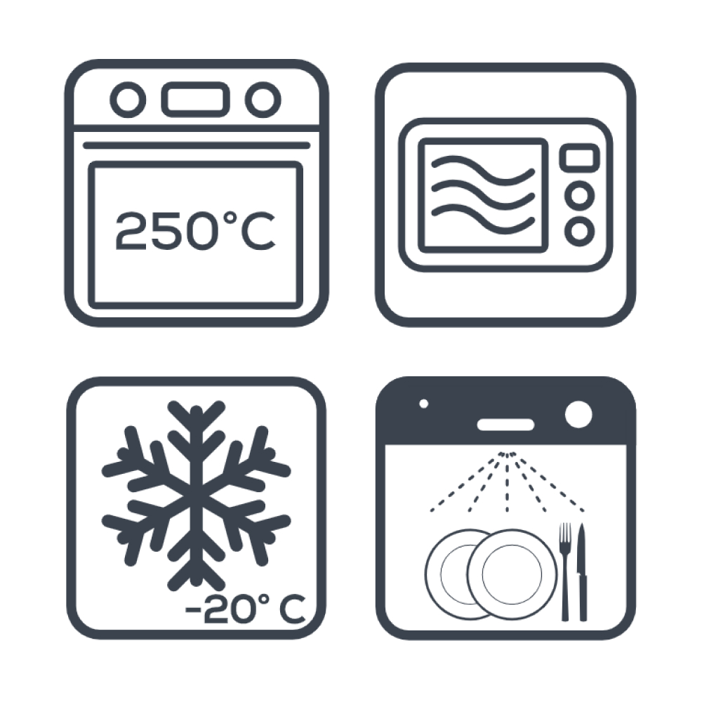 - An toàn khi sử dụng trong tủ đông, lò nướng, lò vi sóng, máy rửa chén